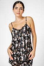 סט פיג'מה סאטן מיני מאוס מנומר בצבע שחור