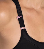 חזיית ספורט ללא עצם, שילוב בד חזק אך נושם. רצועות חזקות ברכיסת איקס בגב לתמיכה מקסימלית, סגירה אחורית ומרחב כוונון גבוה .תפסי הכוונון המצויים בחזית החזייה. משוננים ובכך מונעים החלקה ומקנים תחושה של בטחון ותמיכה מרבית כך שהכל נשאר במקום .חזייה חדשנית בעלת 3 שכבות של בקרת בולם זעזועים ורצועות ארגונומיות למקסימום קלילות.
