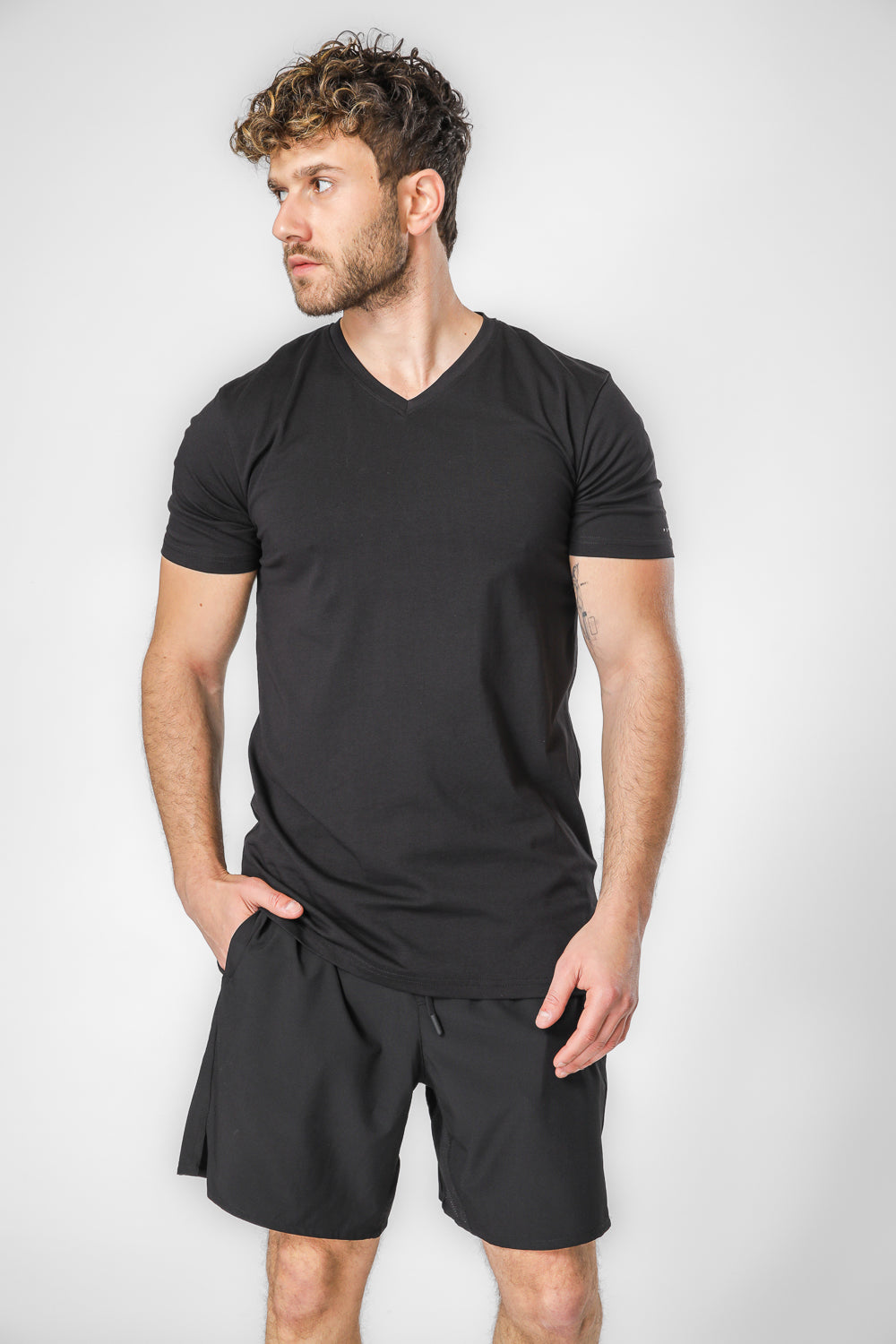 חולצת טישירט שחורה עם צווארון V מבית REPLAY.