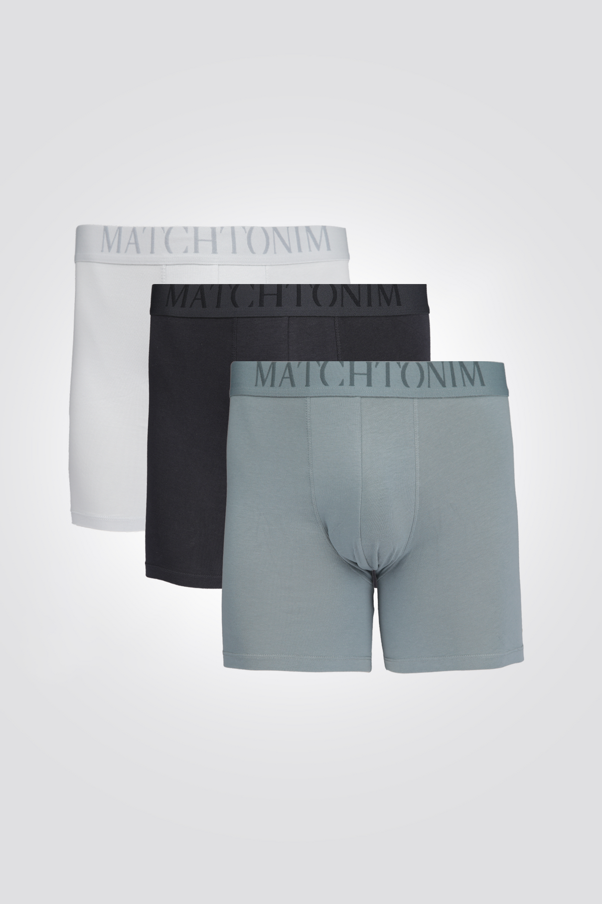 שלישיית תחתוני בוקסר מבית המותג DELTA העשויים מבד סינגל ג’רסי נעים, בגזרה ארוכה וצמודה.