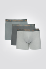 שלישיית תחתוני בוקסר קצרים וצמודים בגווני ירוק.