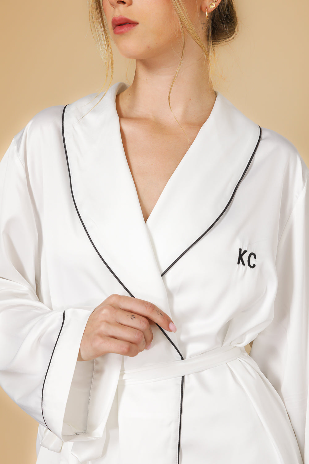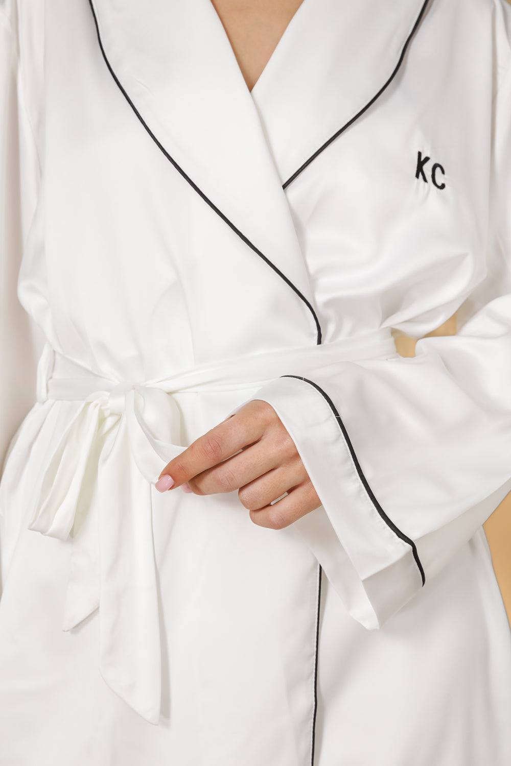 חלוק סאטן בצבע לבן