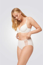 תחתונים לנשים מבית המותג YSABEL MORA עשויים מבד כותנה רך ונעים לנוחות מקסימלית במהלך היום, בגזרת מקסי עם עיטורי טול שקופים בצידי המותניים עם פפיון קטן במרכז.