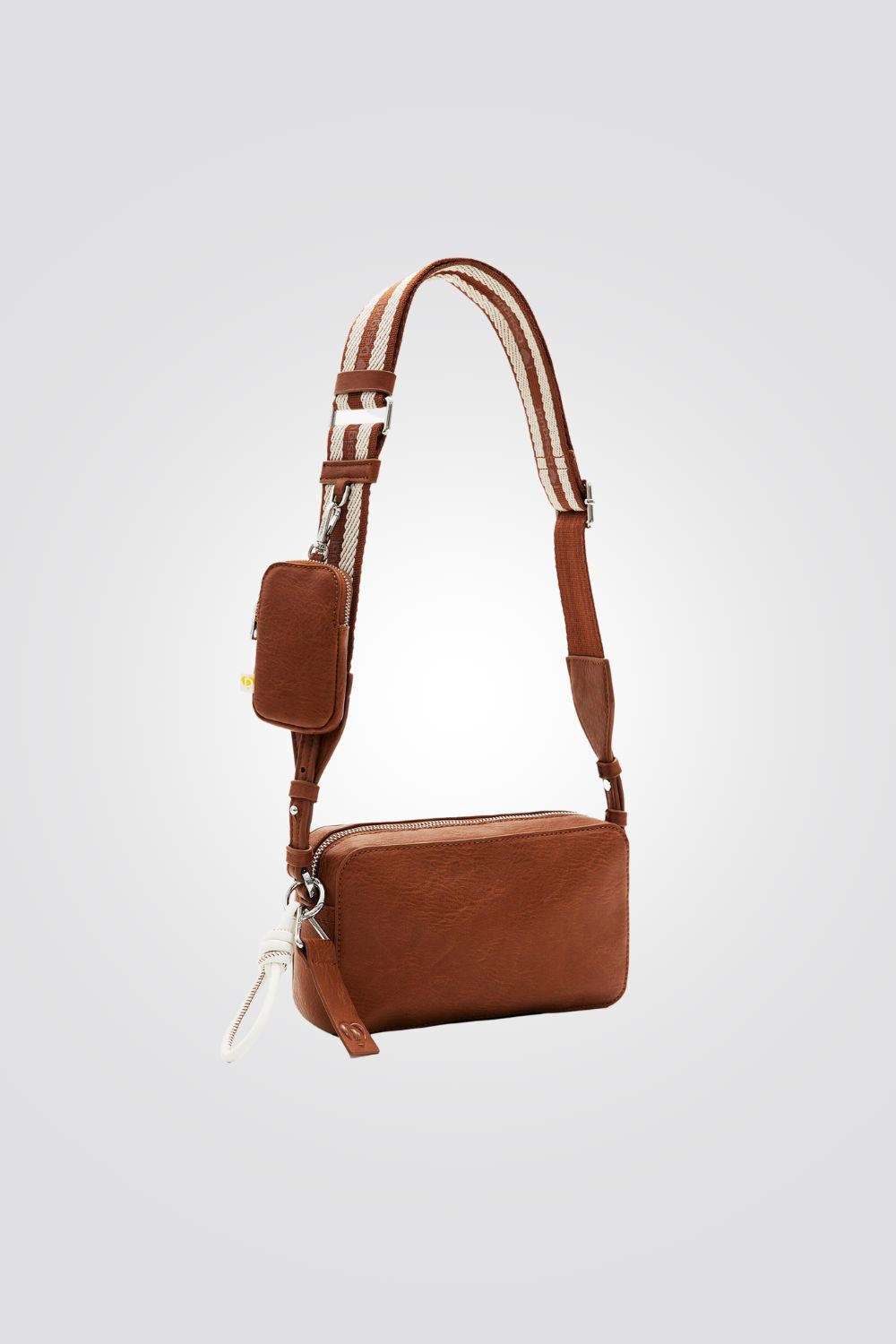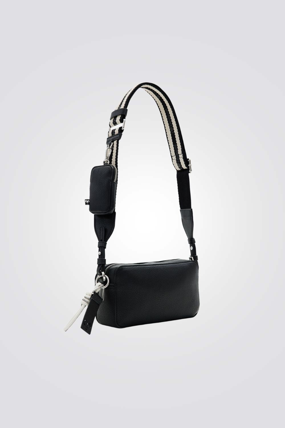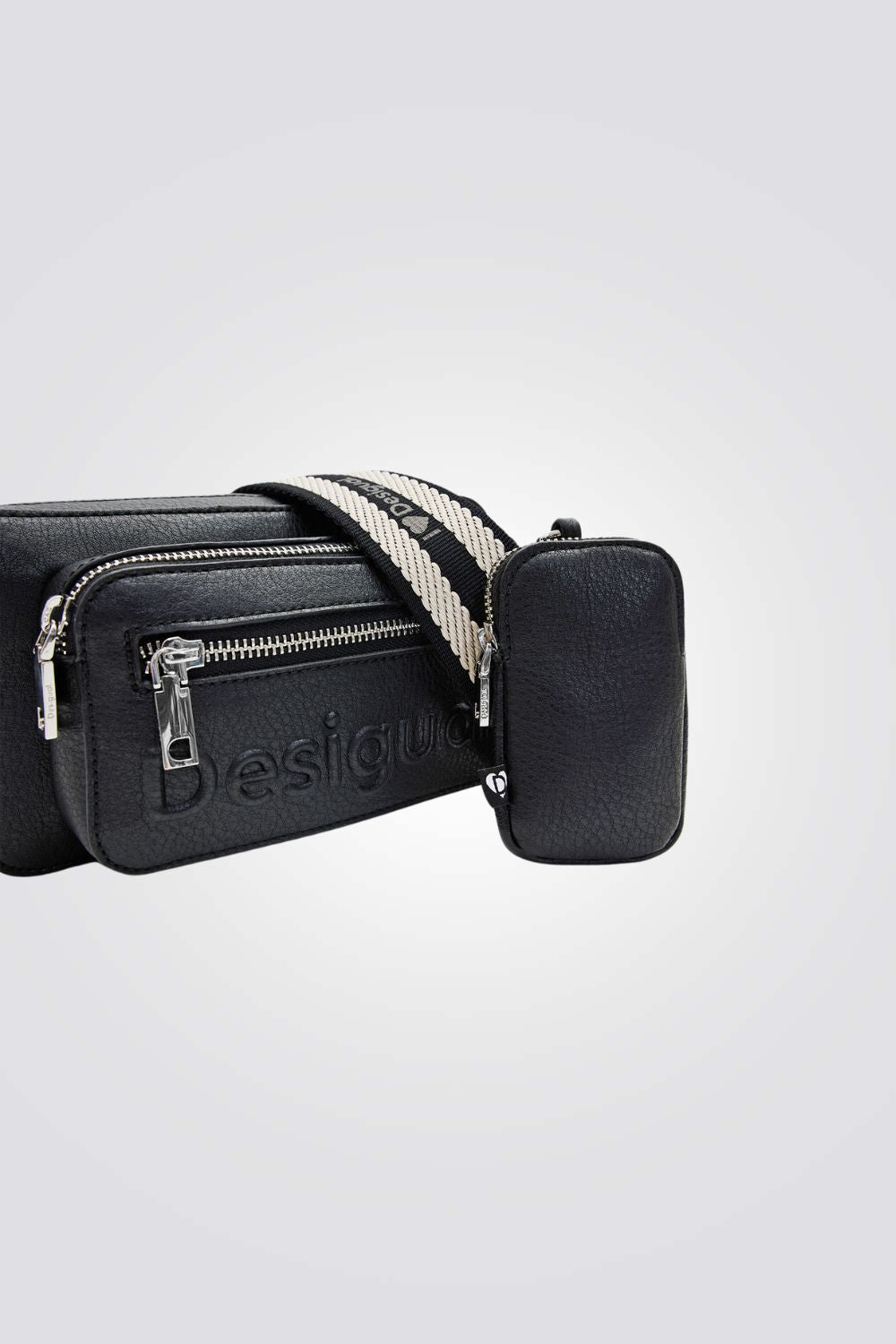 תיק כתף לנשים מבית המותג DESIGUAL, עם תא ראשי וסגירת רוכסן ועוד שני תאים חיצוניים וסגירת רוכסן, ורצועת כתף ארוכה.