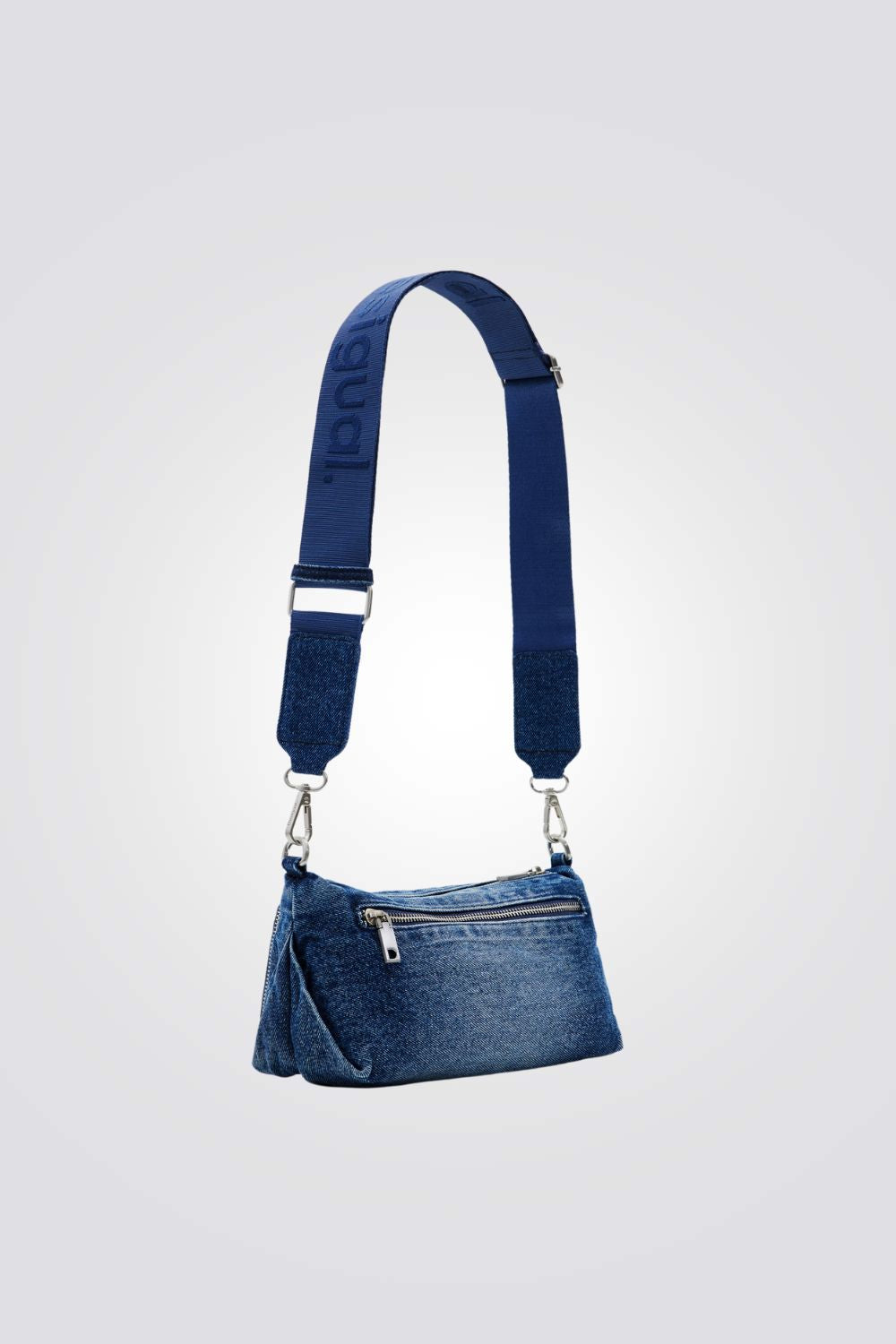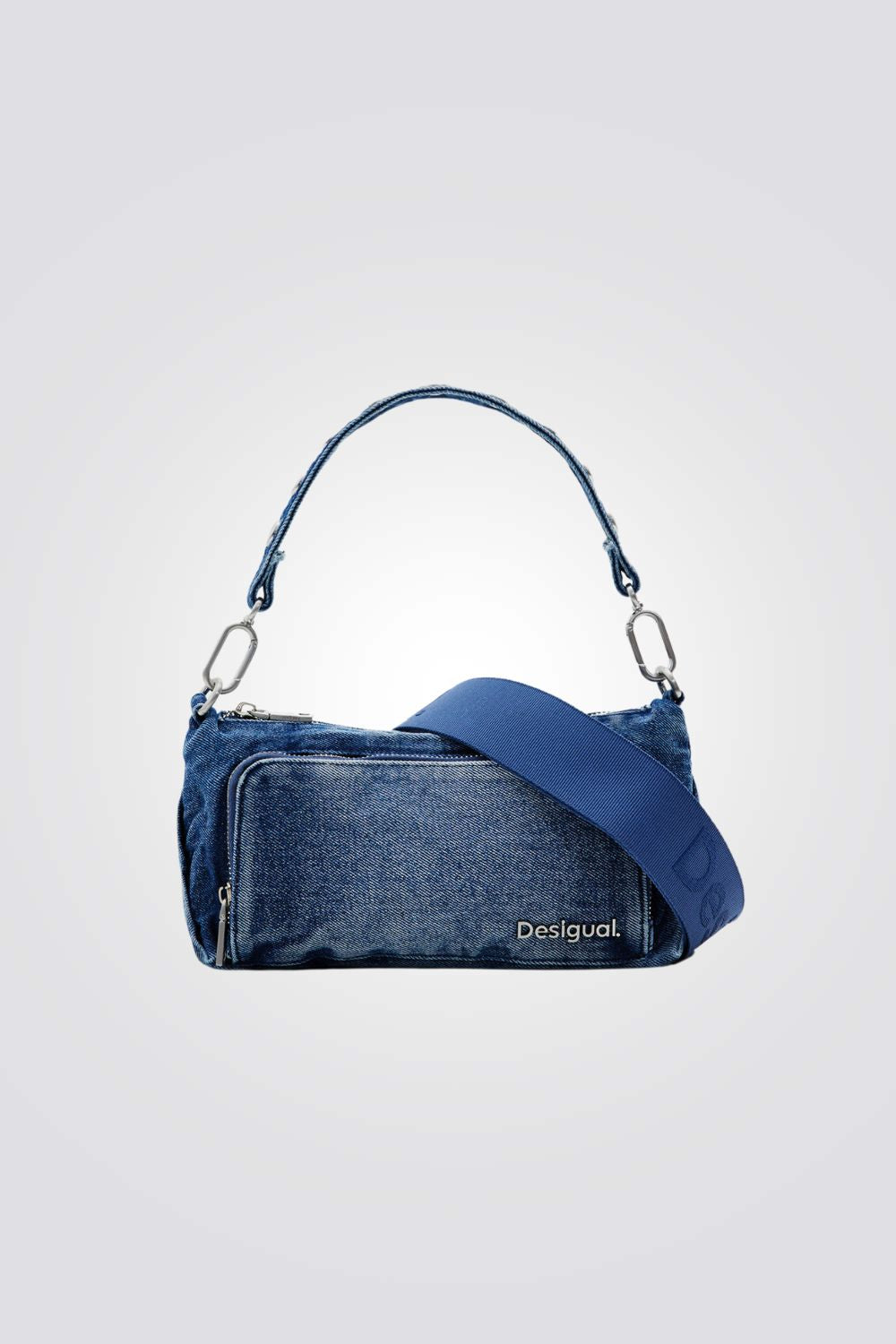 תיק צד ג'ינס לנשים מבית המותג DESIGUAL, ,אופנתי ונוח, עם תא ראשי אחד וסגירת רוכסן, ועוד תא חיצוני וסגירת רוכסן , ורצועת צד.
