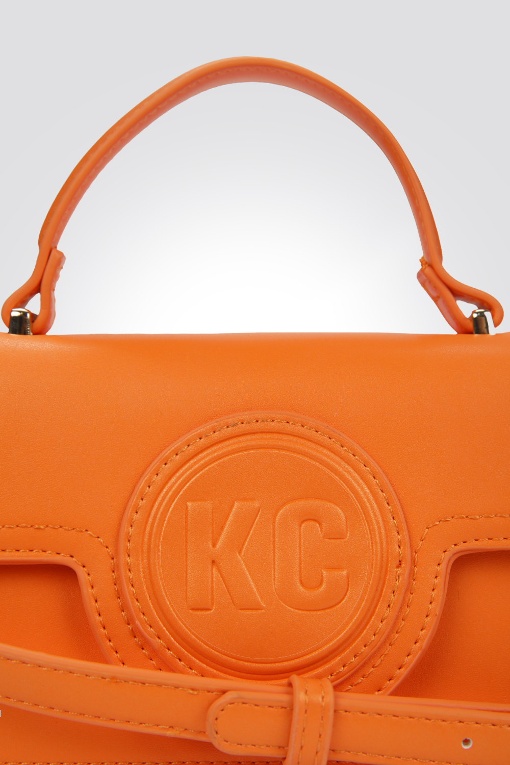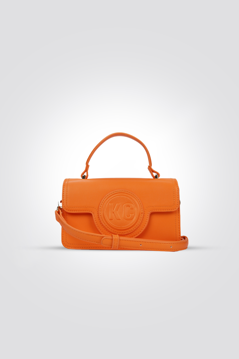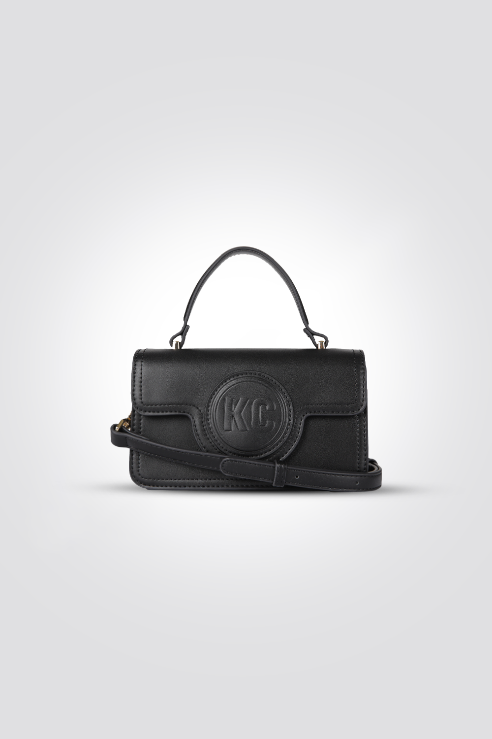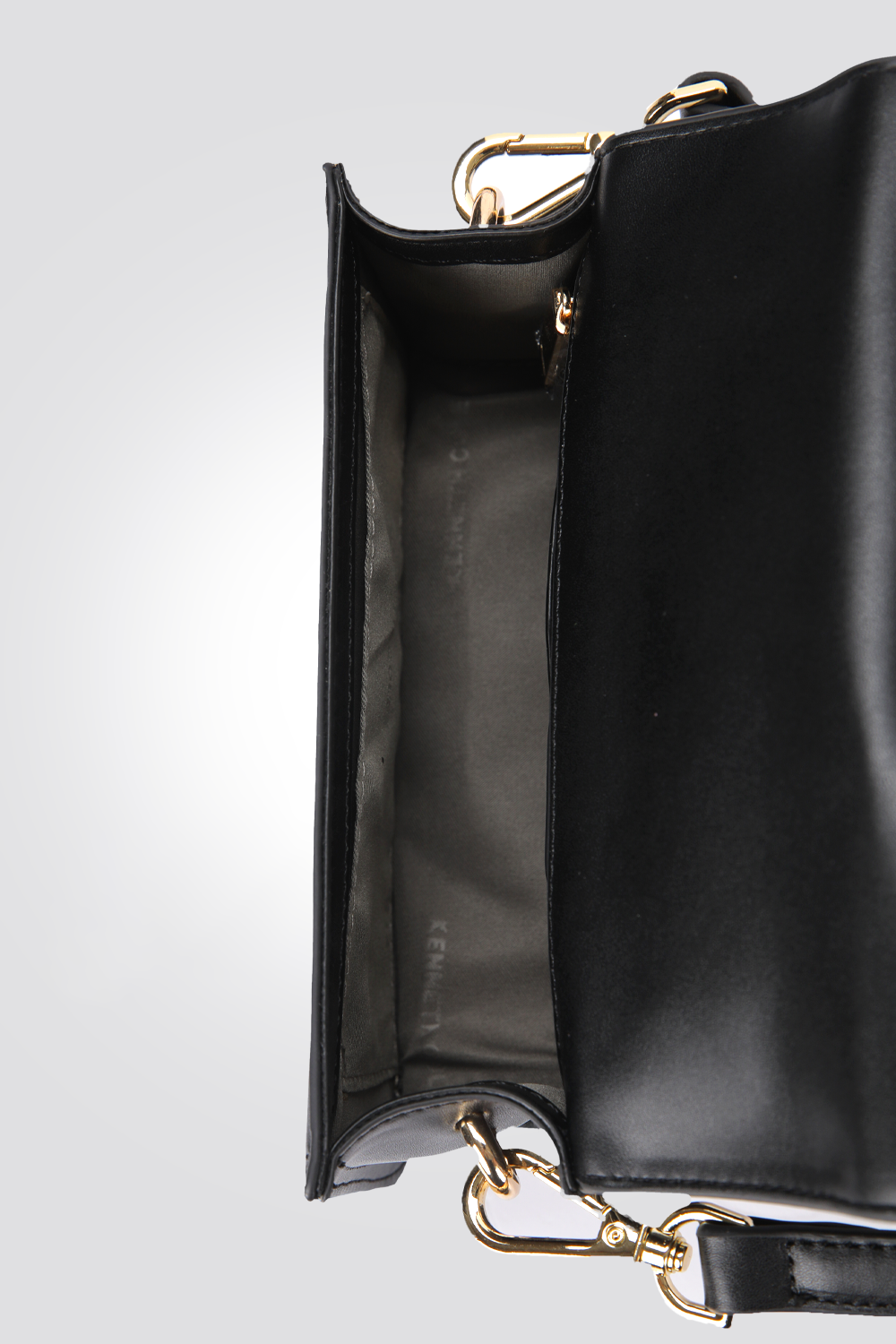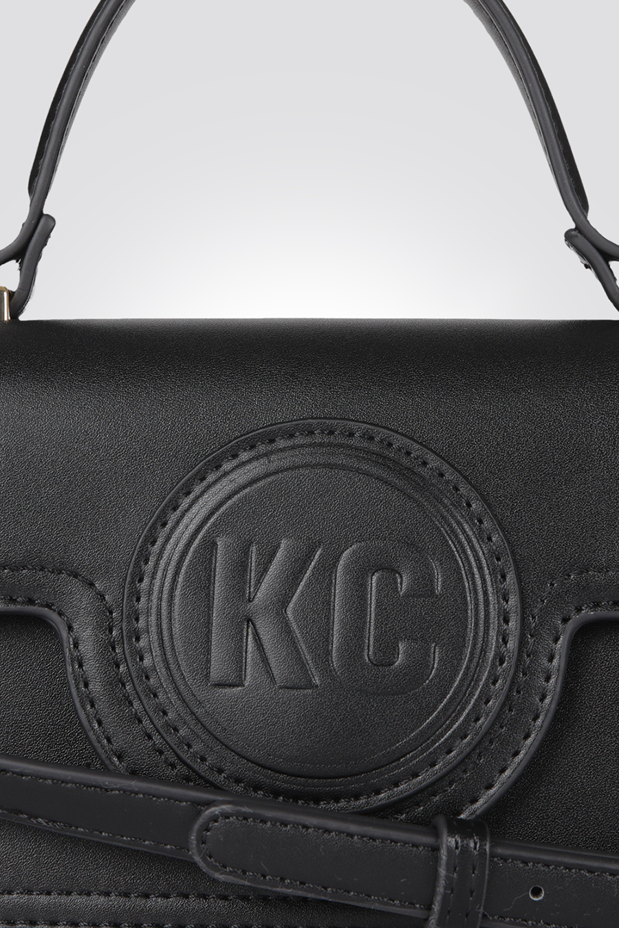 תיק יד מבית המותג KENNETH COLE, עם תא אחד וסגירת כפתור, ידית אחיזה ורצועת צד.