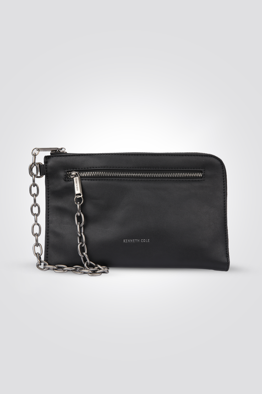 תיק קלאצ' לנשים מבית המותג KENNETH COLE, בעיצוב אופנתי וקלאסי, עם תא ראשי אחד וסגירת רוכסן , ושרשרת ורצועה לאחיזה ביד.