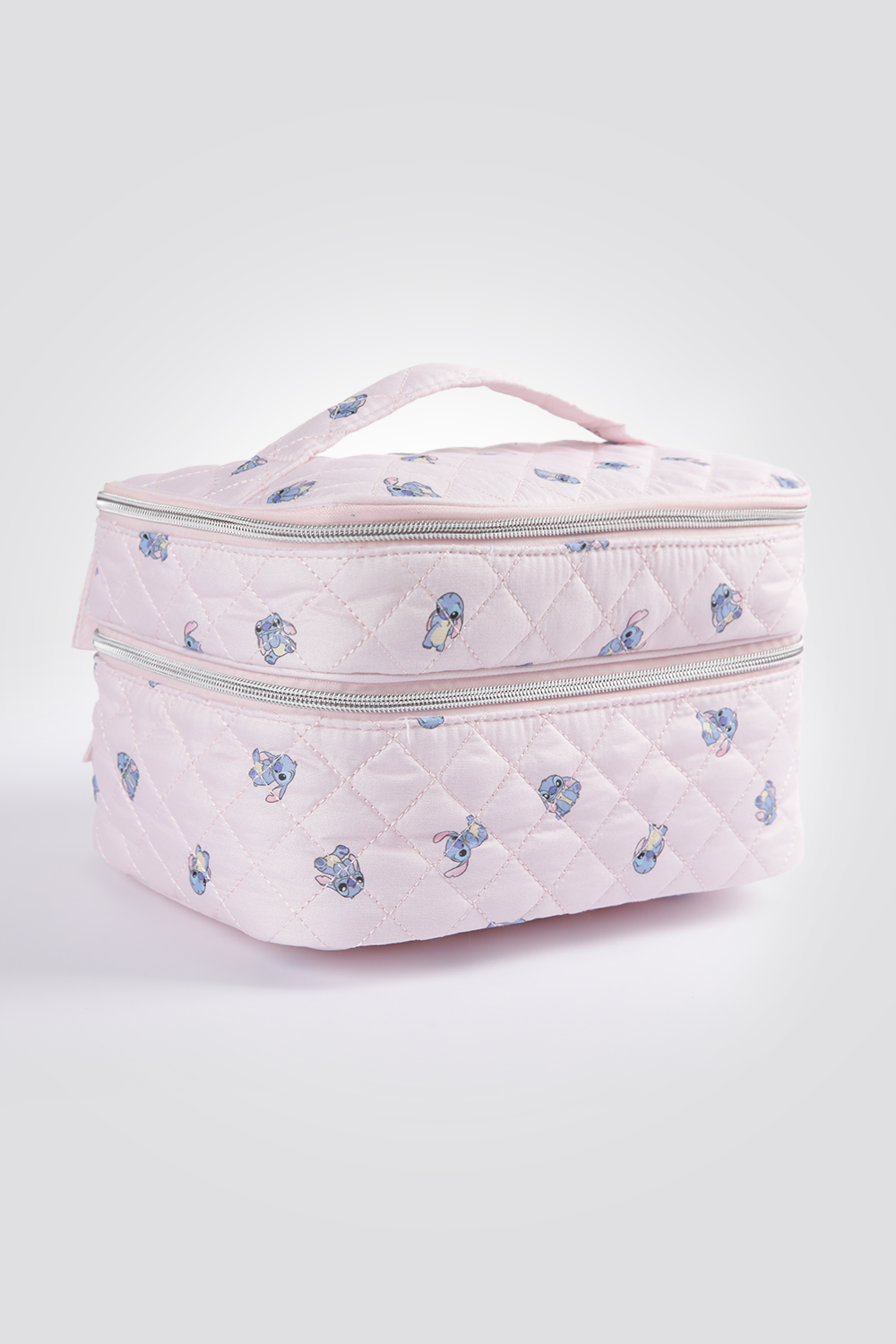 תיק רחצה ואיפור פרקטי ומסודר מבית המותג DELTA בעל שתי קומות נפרדות לאיחסון מושלם. בקומה הראשונה יש מקום לאיחסון מברשות איפור בצורה אידיאלית ונוחה. התיק נסגר בסגירת רוכסן ובעל ידית נשיאה בהדפס של סטיץ’.