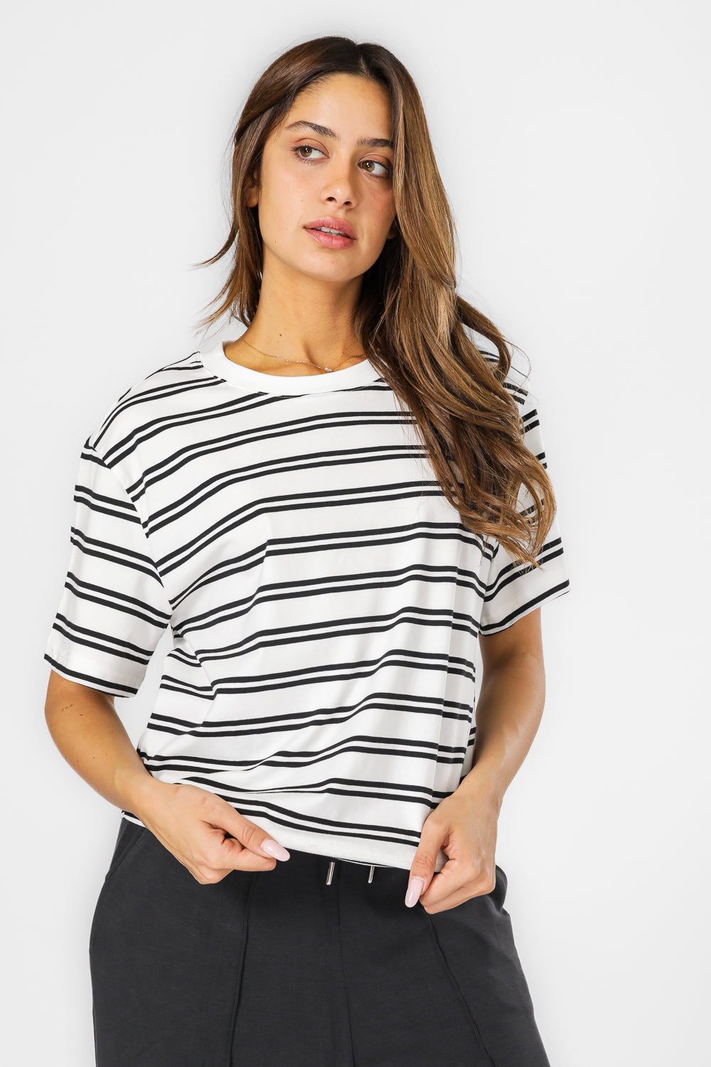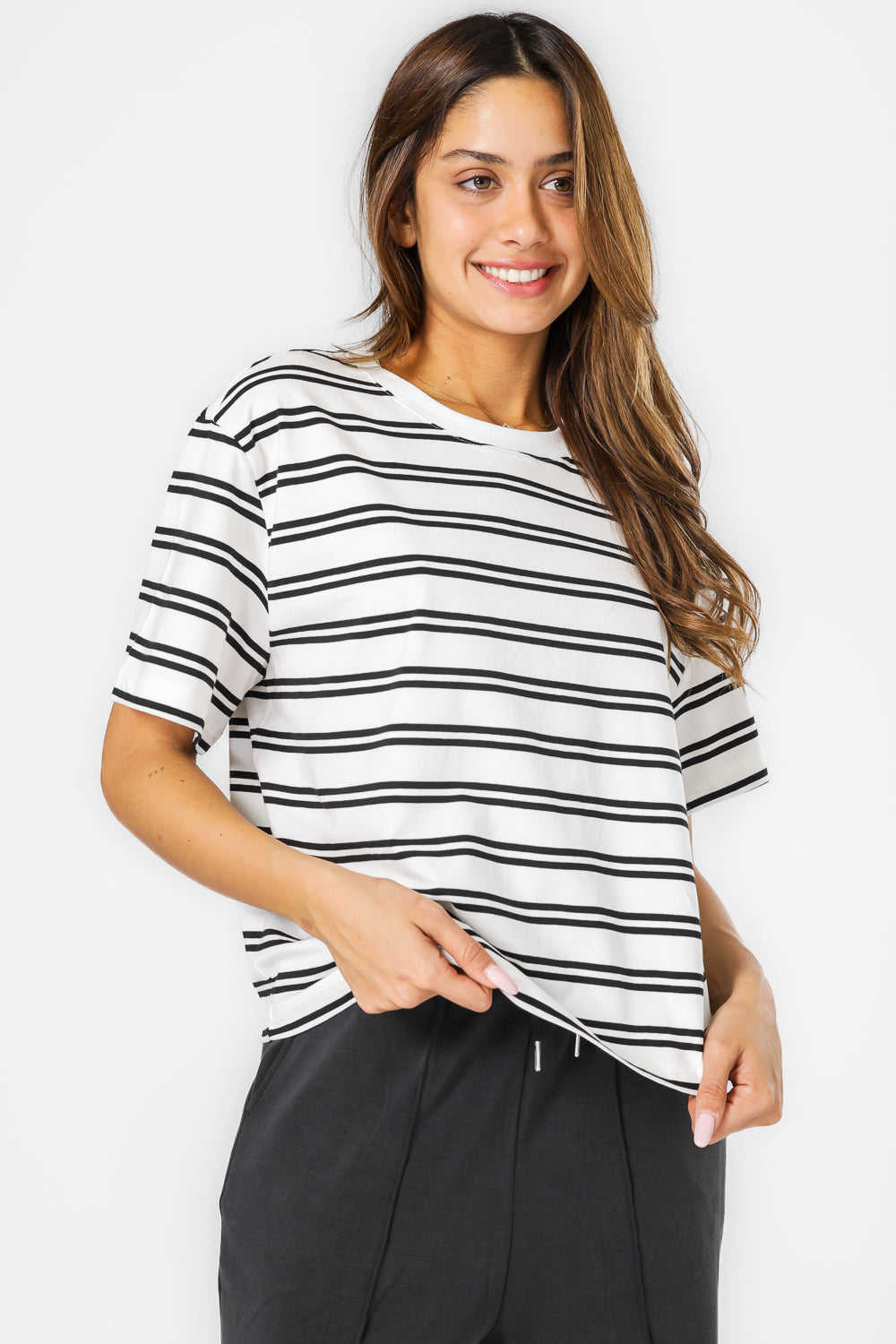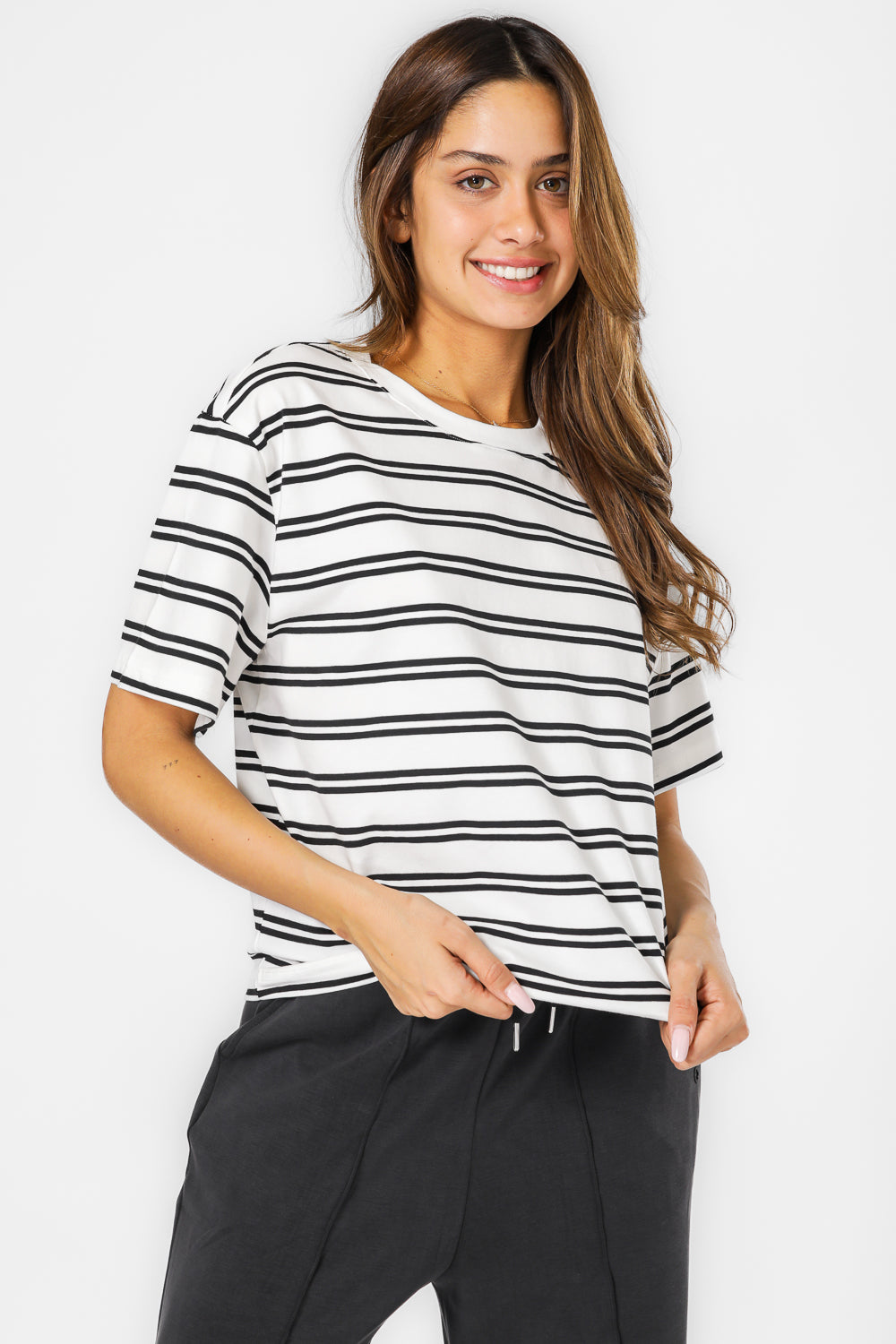 חולצה קצרה לנשים מבית המותג DELTA העשויה מבד סינגל ג’רסי קליל, בגזרת קרופ עם שרוולים קצרים וצווארון עגול.