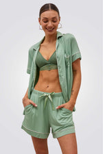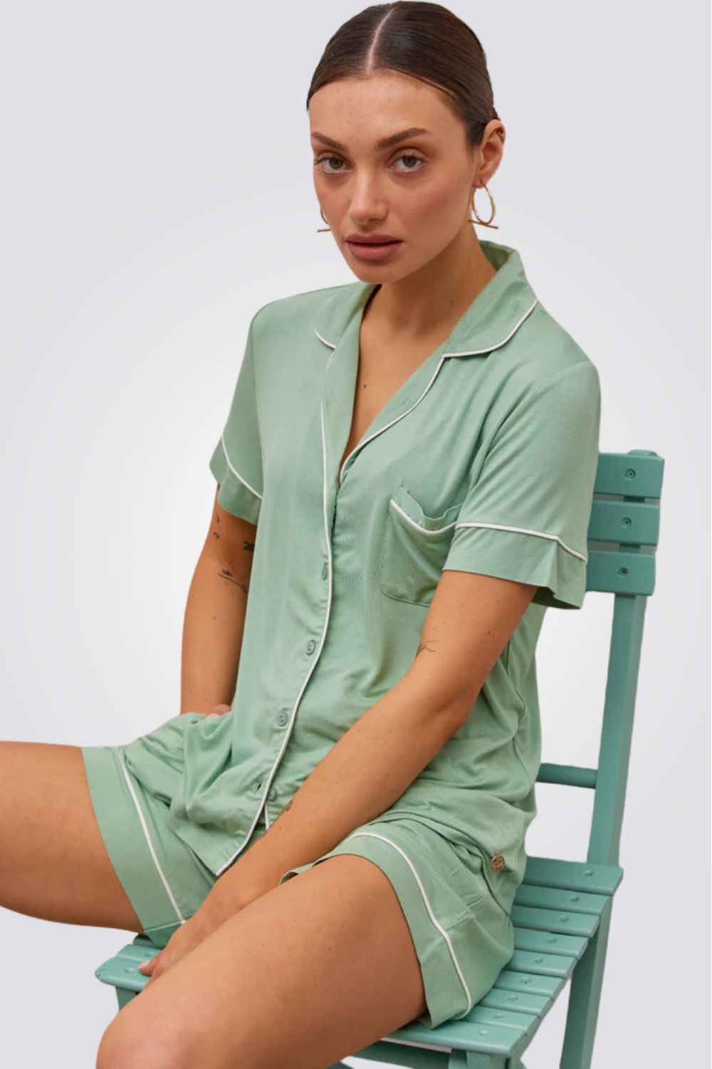 פיג'מה מכופתרת קצרה לנשים בצבע ירוק