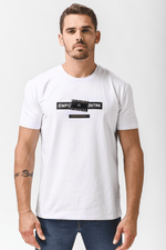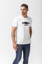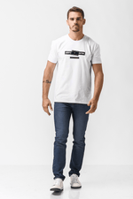 טישירט לוגו בצבע לבן עם כיתוב שחור