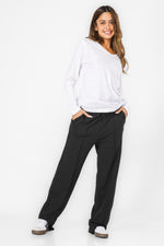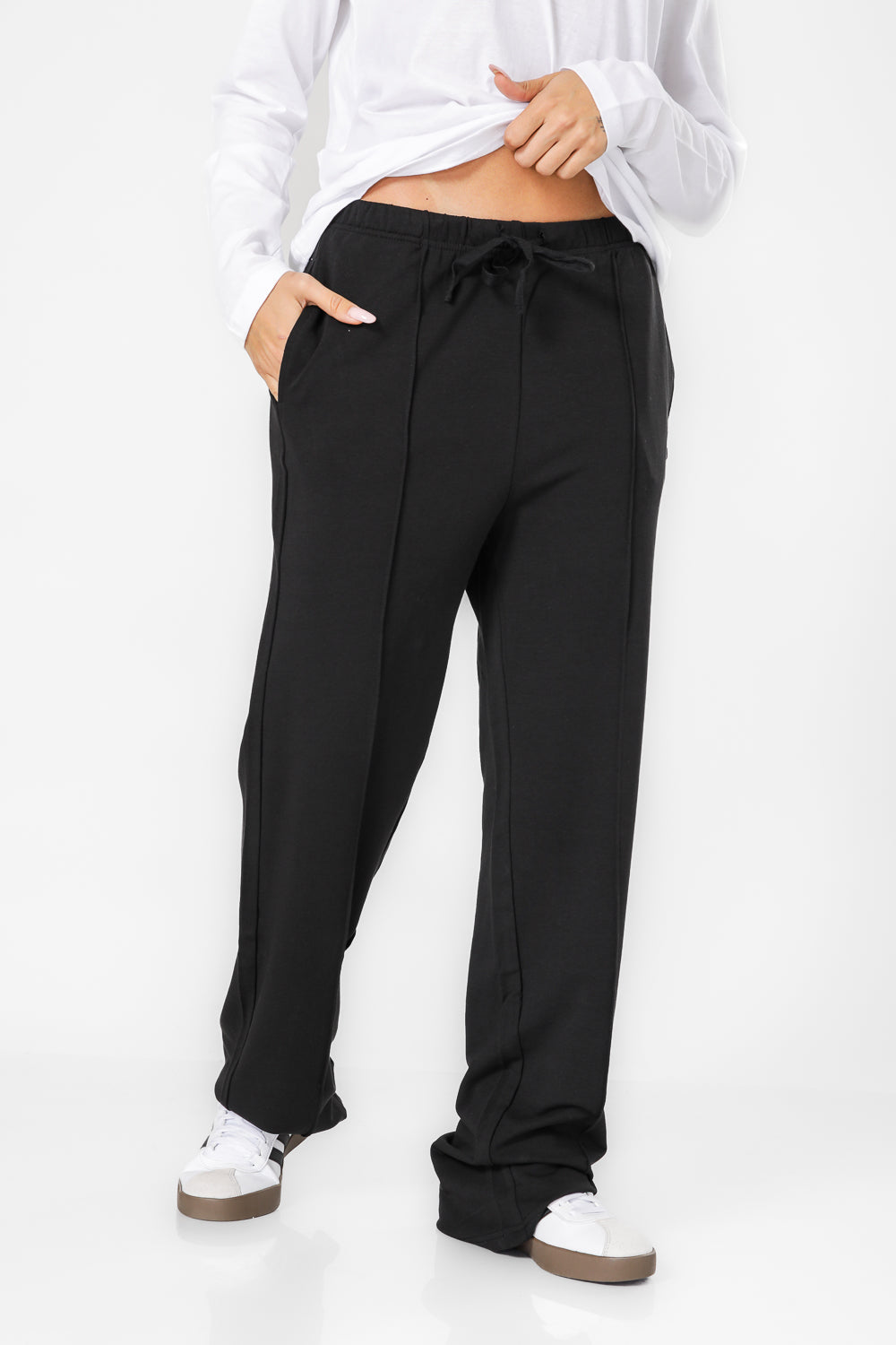 מכנסיים ארוכים בגזרה רחבה מבית המותג DELTA העשויים מבד פרנץ’ טרי עם גומי במותניים, שרוכי קשירה וכיסים בצדדים לנוחות מירבית.