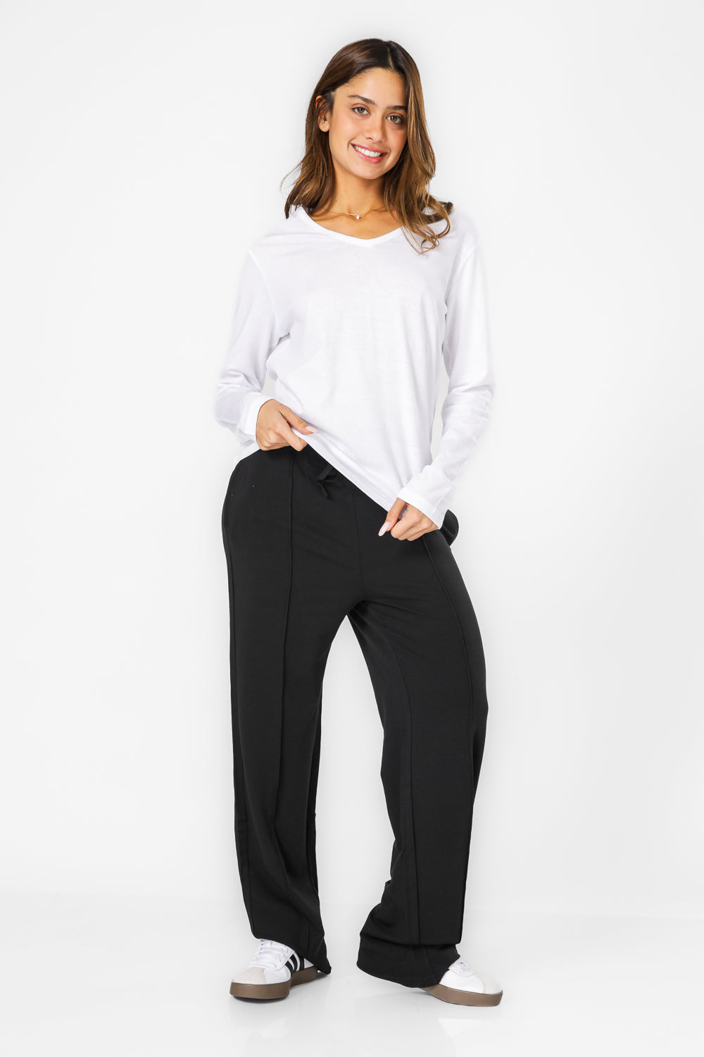 מכנסיים ארוכים דקים בצבע שחור