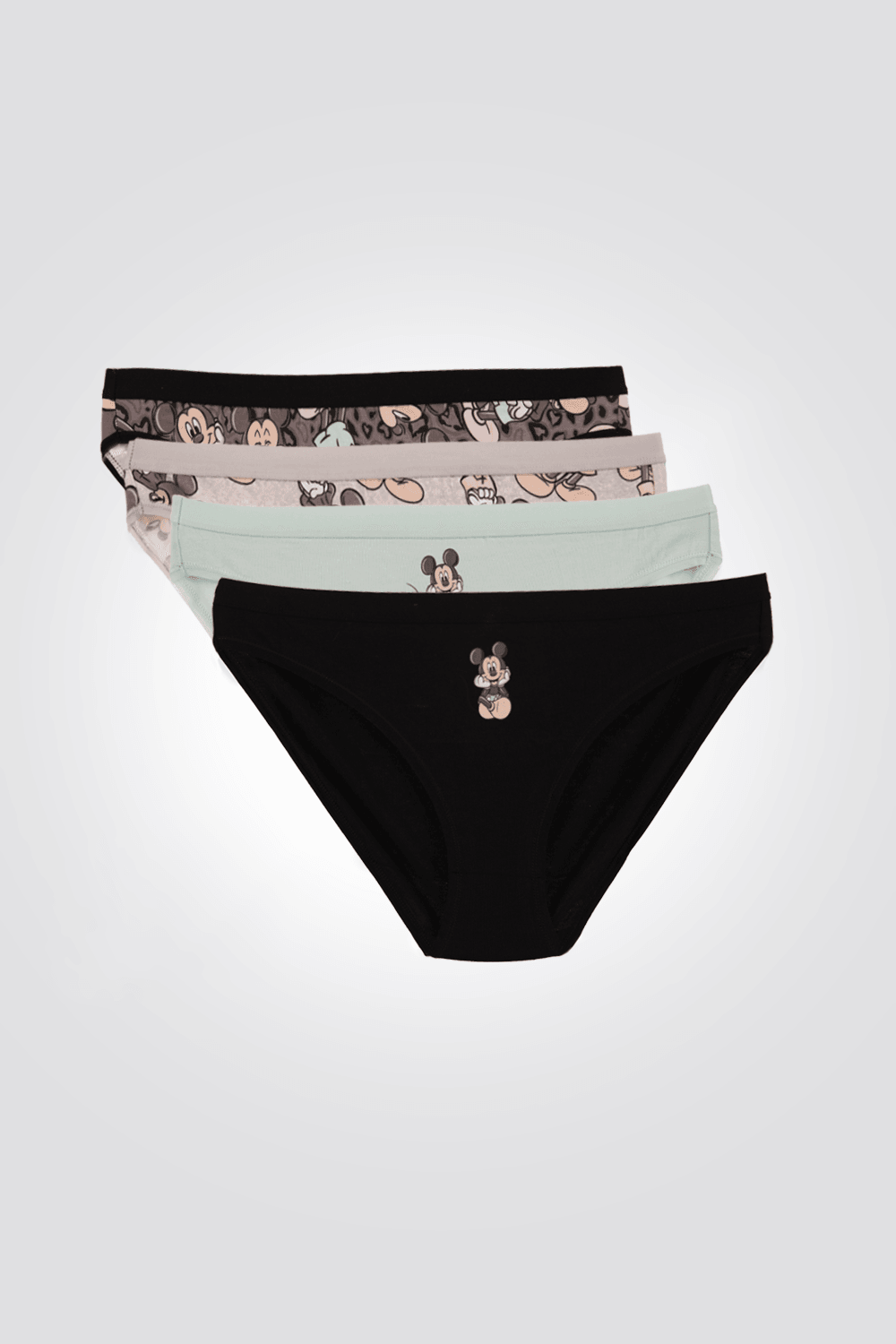 מארז ארבעה זוגות תחתונים מבד נושם וגמיש בהדפסים שונים של מיקי מאוס ובגזרת מיני.