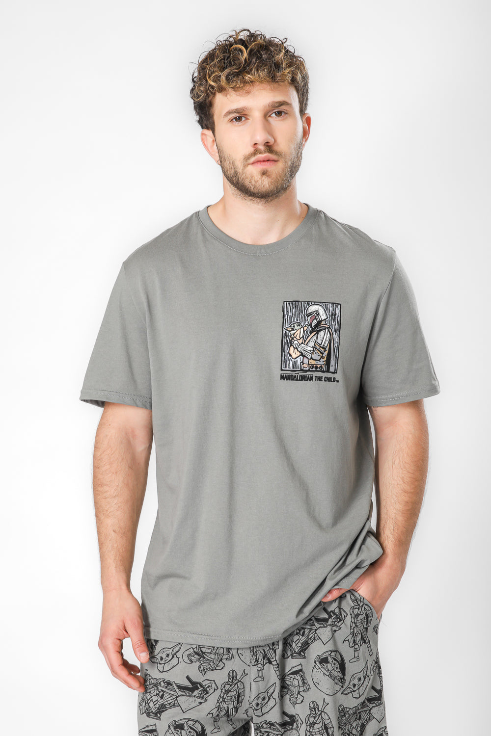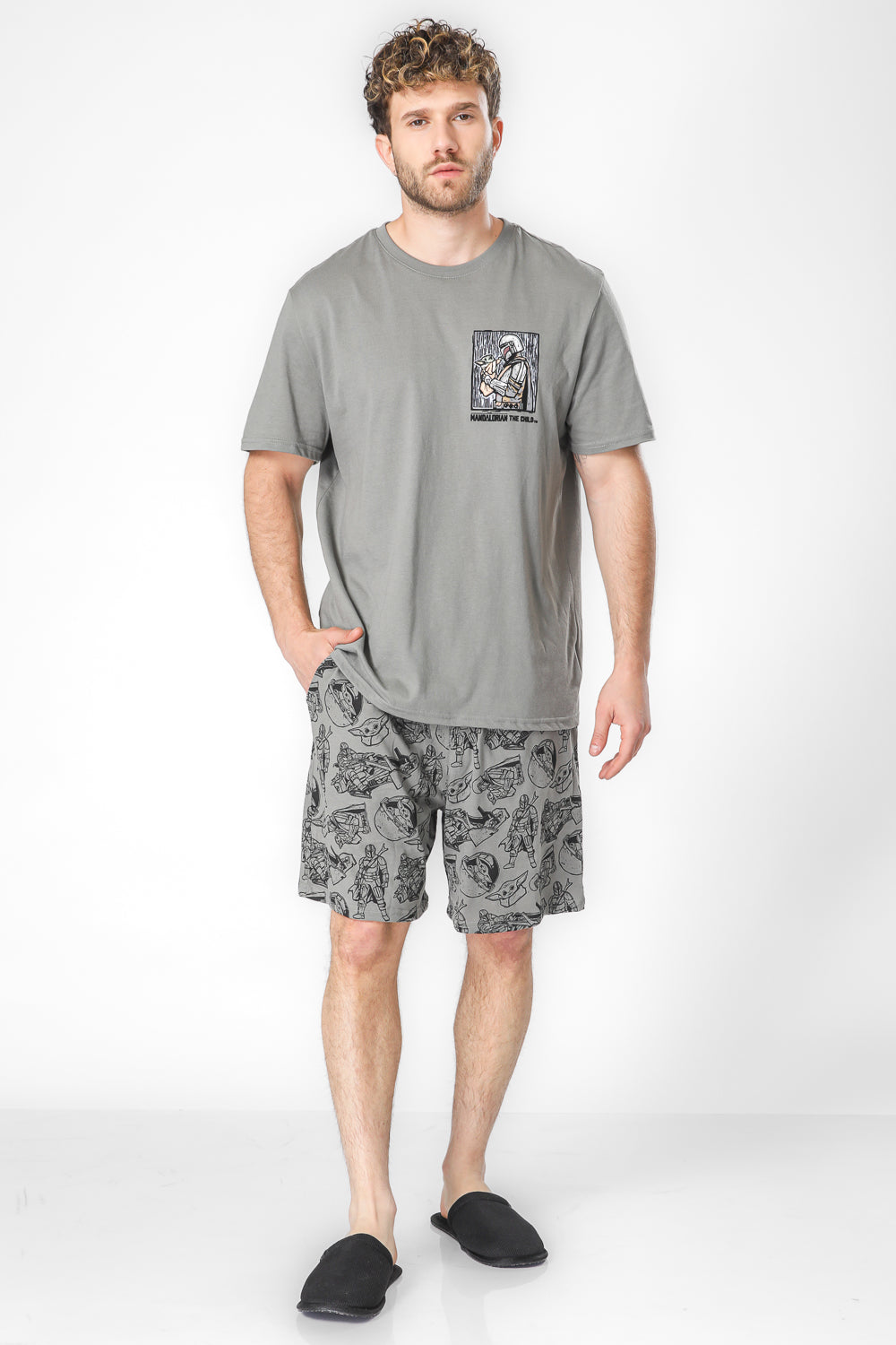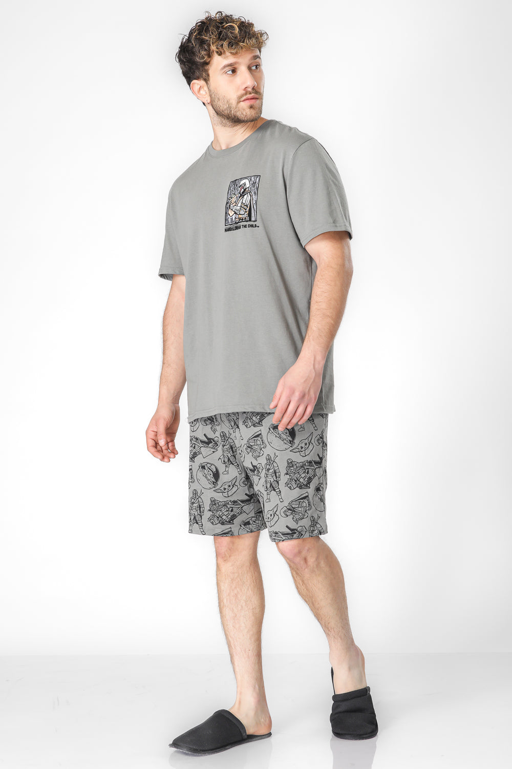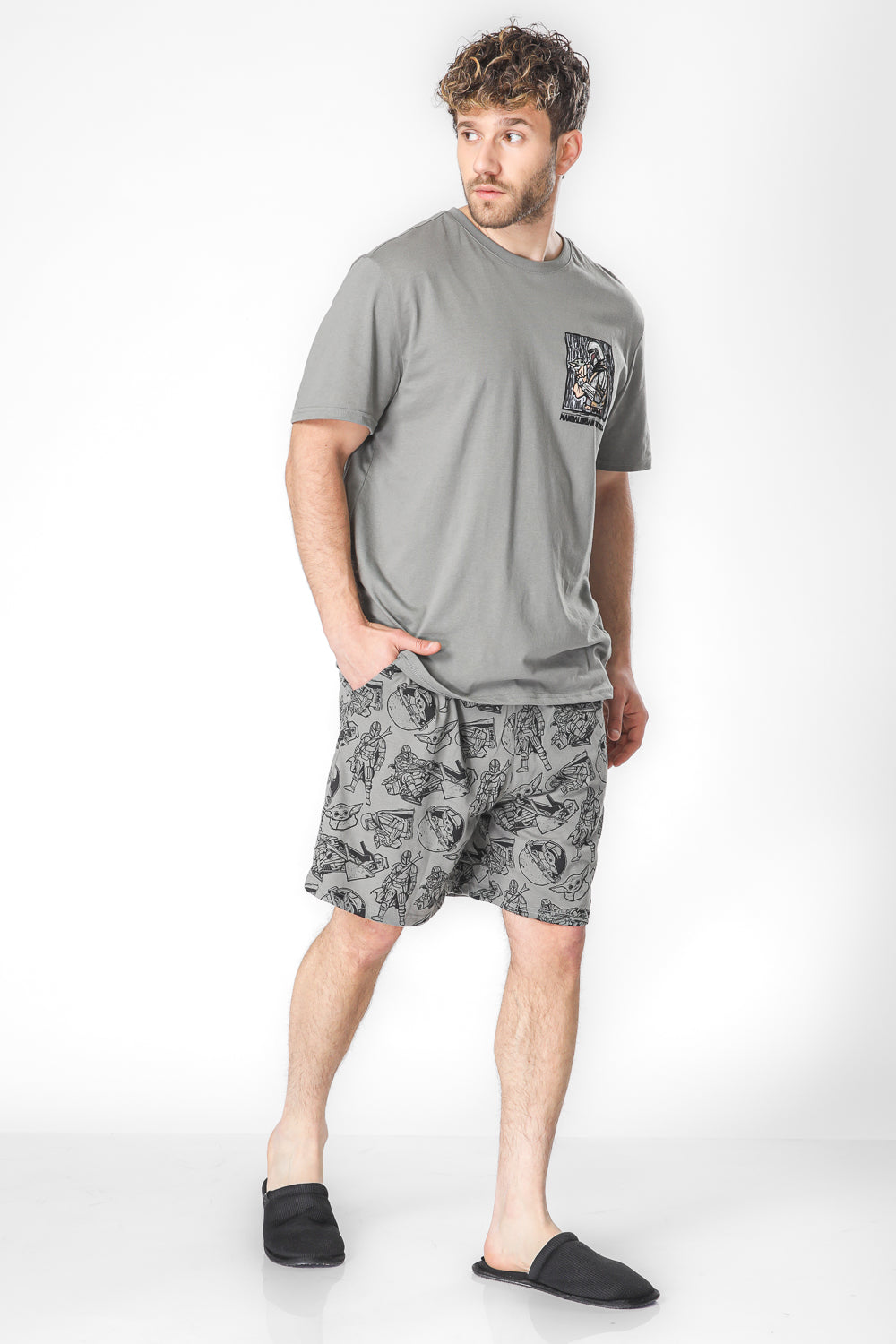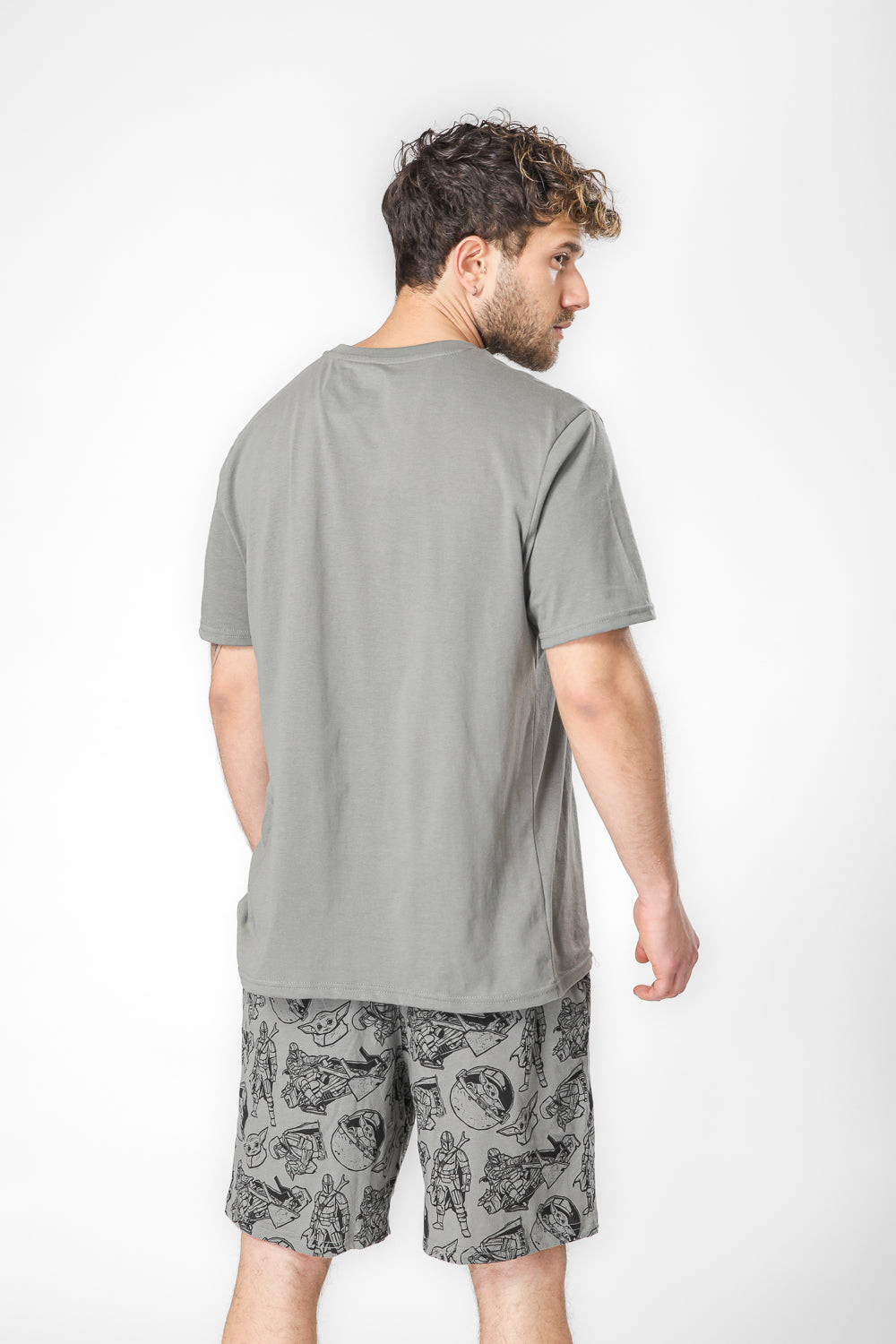 סט פיג'מה קצרה לגברים מבית המותג DELTA העשויה בד קליל ונעים במוטיב המנדלוריאן. חולצה עם צווארון עגול ושרוולים קצרים, ומכנסיים קצרים עם גומי במותניים, שרוכי קשירה וכיסים בצדדים לנוחות מירבית.