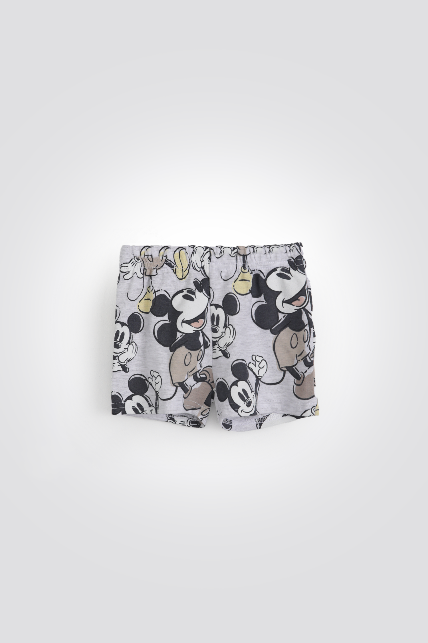 סט פיג'מת קיץ לתינוקות מבית המותג DELTA העשויה מבד אינטרלוק נעים ודק עם הדפס צבעוני של מיקי מאוס. בגד גוף עם צווארון עגול, שרוולים קצרים וסוגרי תיק-תק ומכנסיים קצרים עם גומי במותניים.