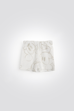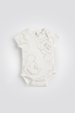 סט פיג’מת קיץ לתינוקות מבית המותג DELTA העשויה מבד אינטרלוק דק וקליל בהדפס מתוק של מיקי מאוס. הסט כולל בגד גוף עם מפתח צוואר עגול, שרוולים קצרים וסוגרי טיק-טק בתחתית, ומכנסיים קצרים תואמים עם גומי במותניים.