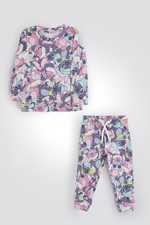 סט פיג'מה מבית המותג DELTA העשוי ארוך מבד רך ונעים עם הדפס צבעוני של סטיץ. חולצה עם צווארון עגול, שרוולים ארוכים וסיומת מנג’ט ומכנסיים ארוכים עם גומי במותניים וסיומת מנג’ט.