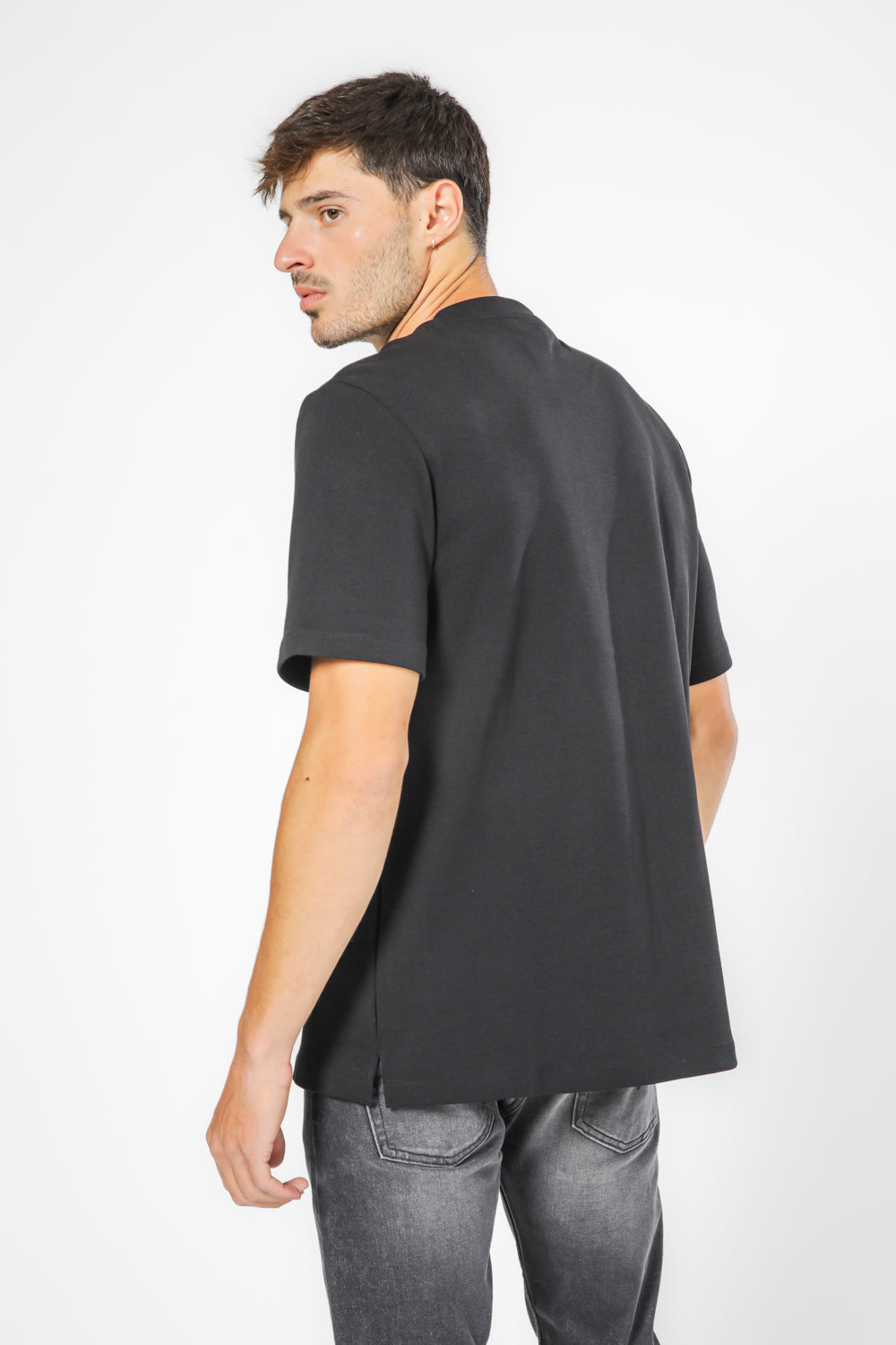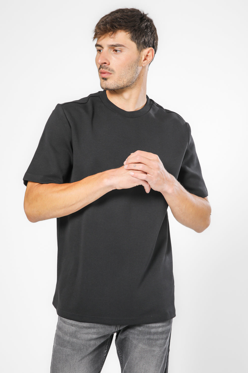 חולצה מבד אינטרלוק עבה, עם מפתח צוואר עגול ושרוולים קצרים.