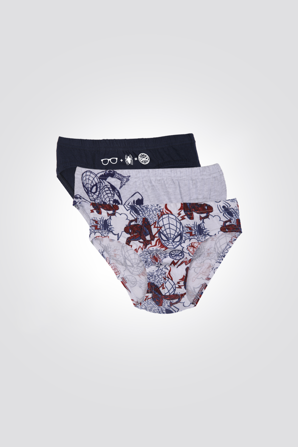 מארז שלישיית תחתונים לילדים מבית המותג DELTA בגזרה קלאסית לבנים עם הדפסים מדליקים של ספיידרמן.