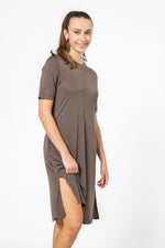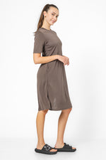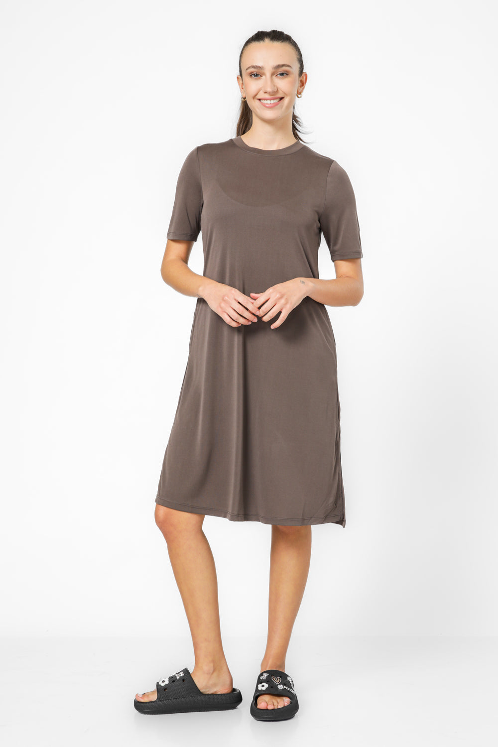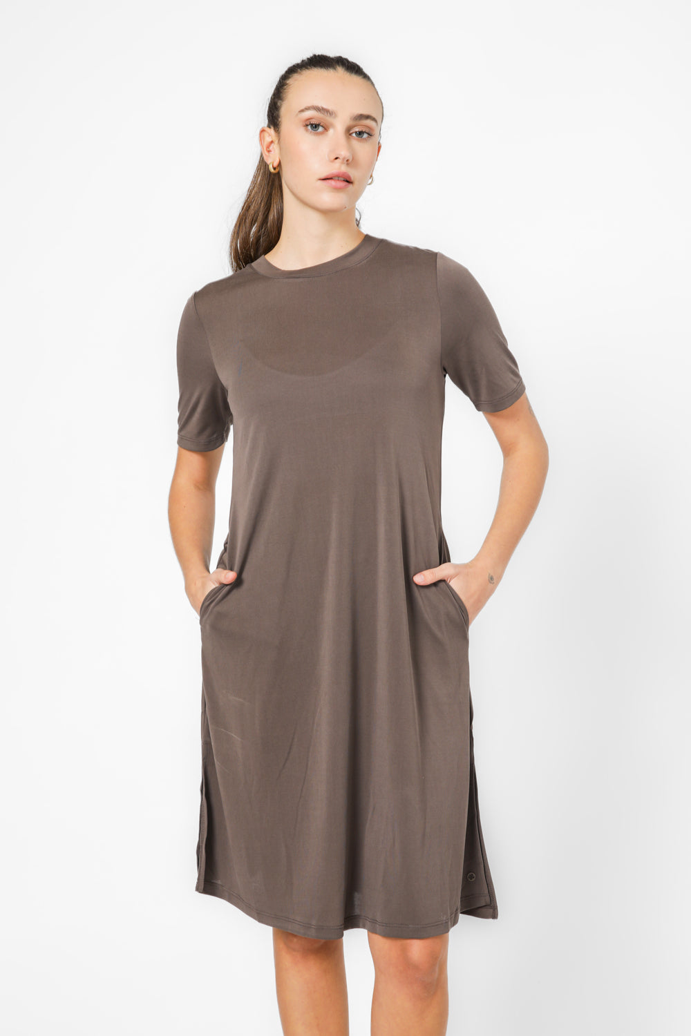 שמלה קצרה עד הברך מבית המותג DELTA המורכבת משילוב בד מודל קליל וגמיש עם צווארון עגול, שרוולים קצרים וכיסים.