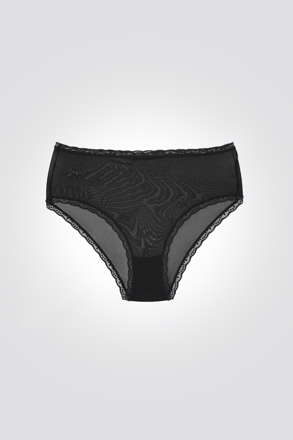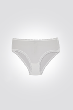תחתוני היפסטר מבית המותג DELTA העשויים מבד ניילון מיוחד עם סיומת תחרה.