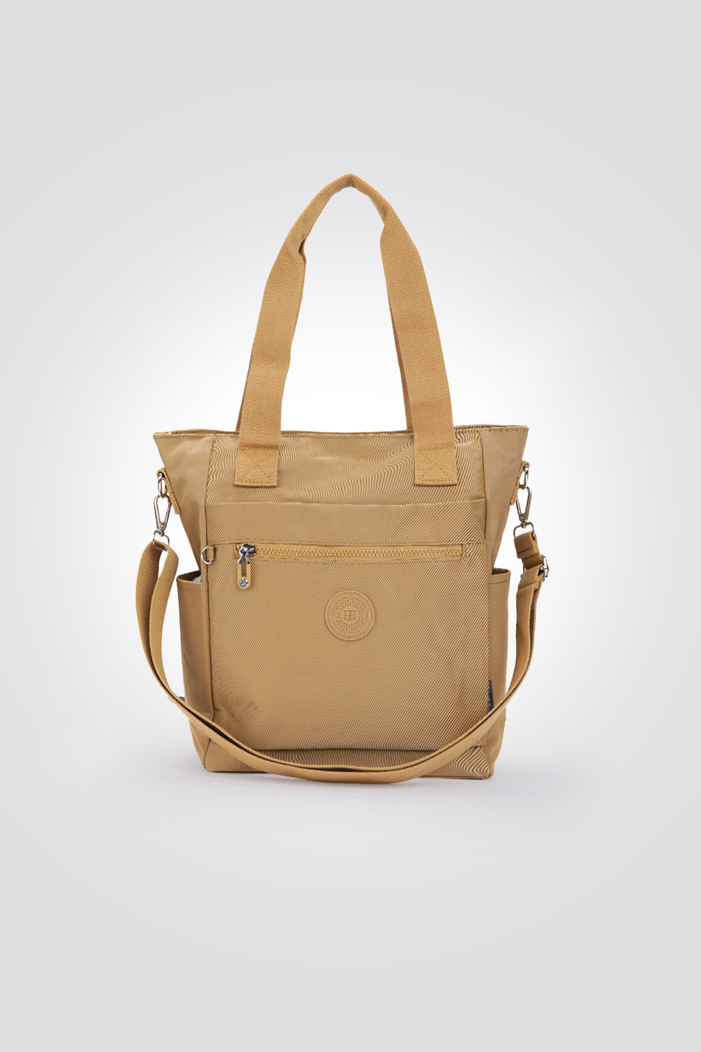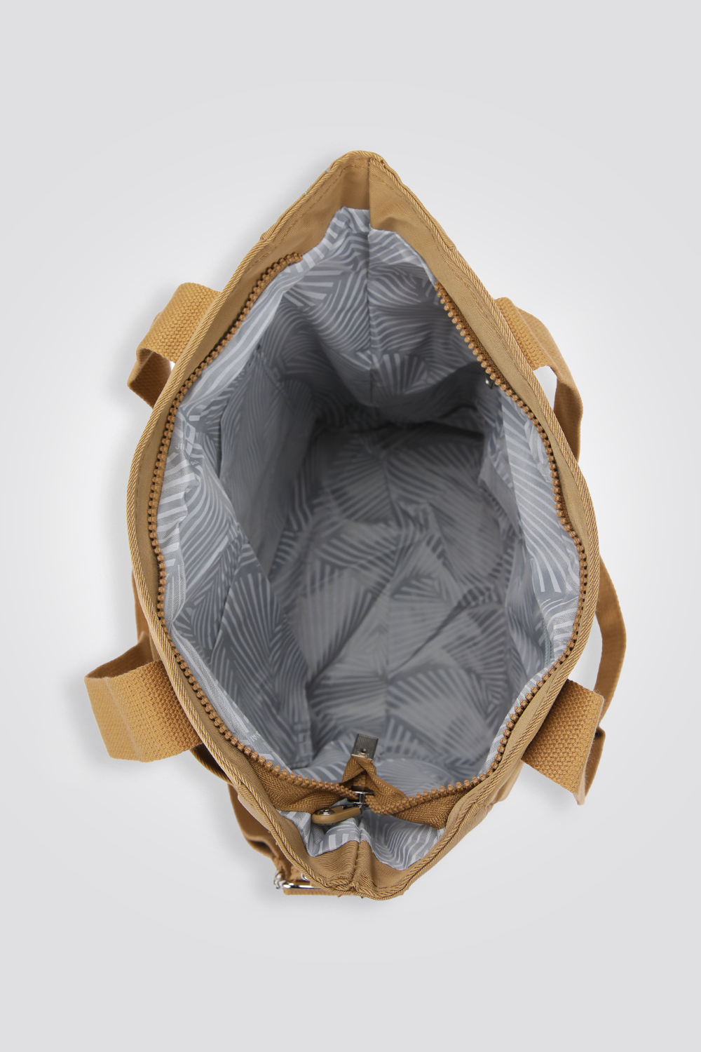 תיק יד לנשים מבית המותג CLOTHBAG, גדול ונוח, עם תא ראשי וסגירת רוכסן, שני ידיות נשיאה ועוד רצועה ארוכה נוספת לנשיאה.