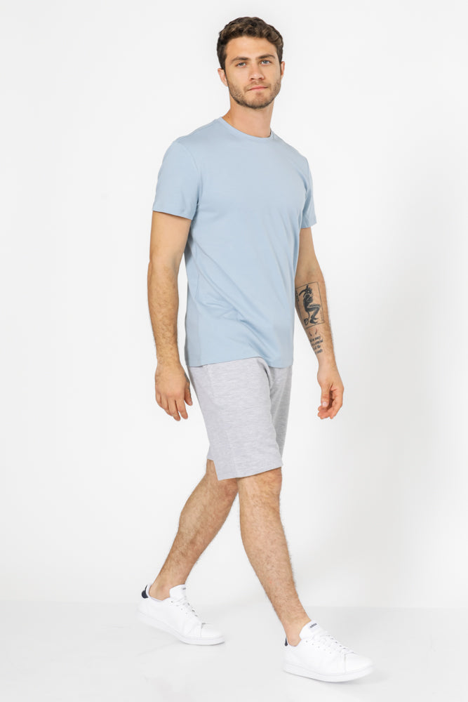 מבד סינגל ג’רסי קליל, בגזרת סלים עם שרוולים קצרים וצווארון עגול.