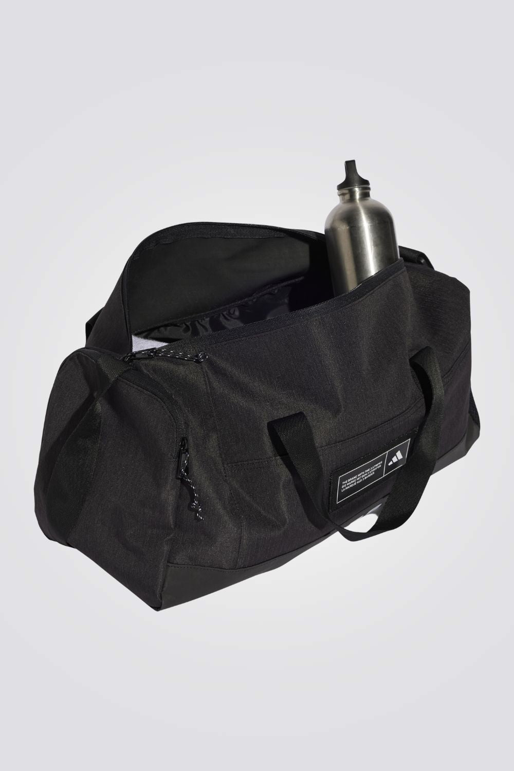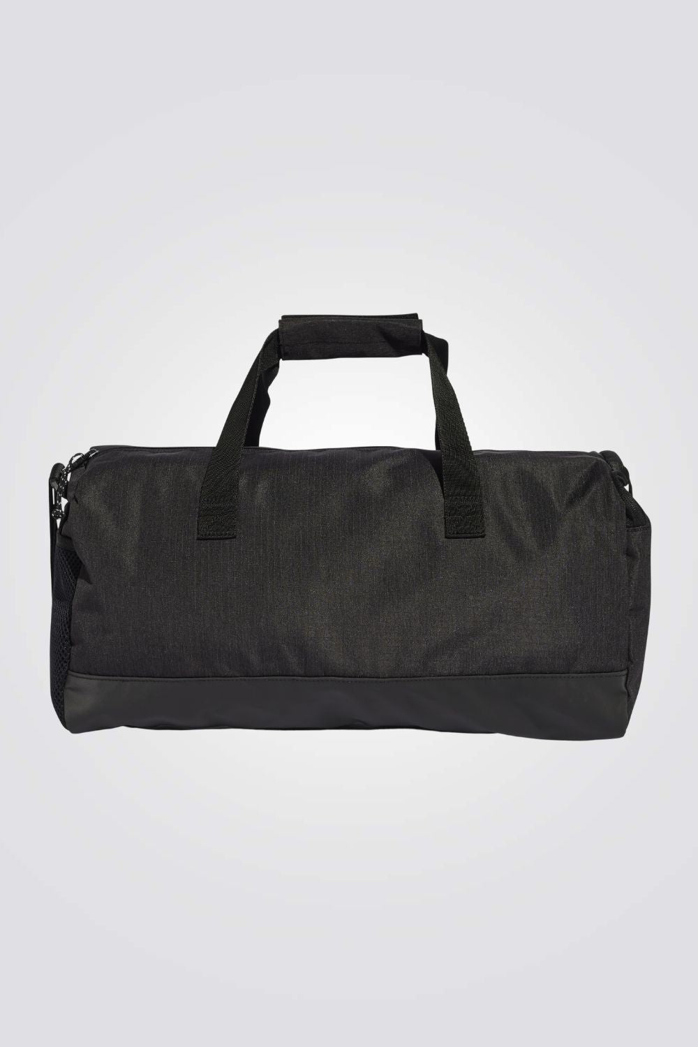 תיק אימון מבית המותג ADIDAS לגברים ונשים בצבע שחור עם סמל המותג בלבן בקידמת התיק, בעל תא עליון רחב, שתי ידיות אחיזה, רצועת כתף מרופדת ומתכווננת הניתנת להסרה, שני כיסי רשת צדדיים ותא בטנה פנימי לשמירת חפצים.