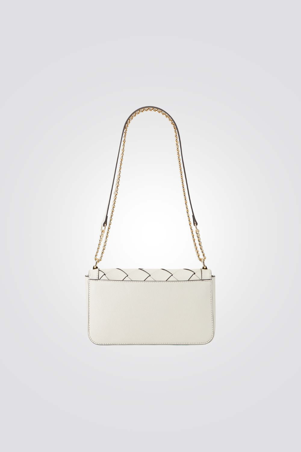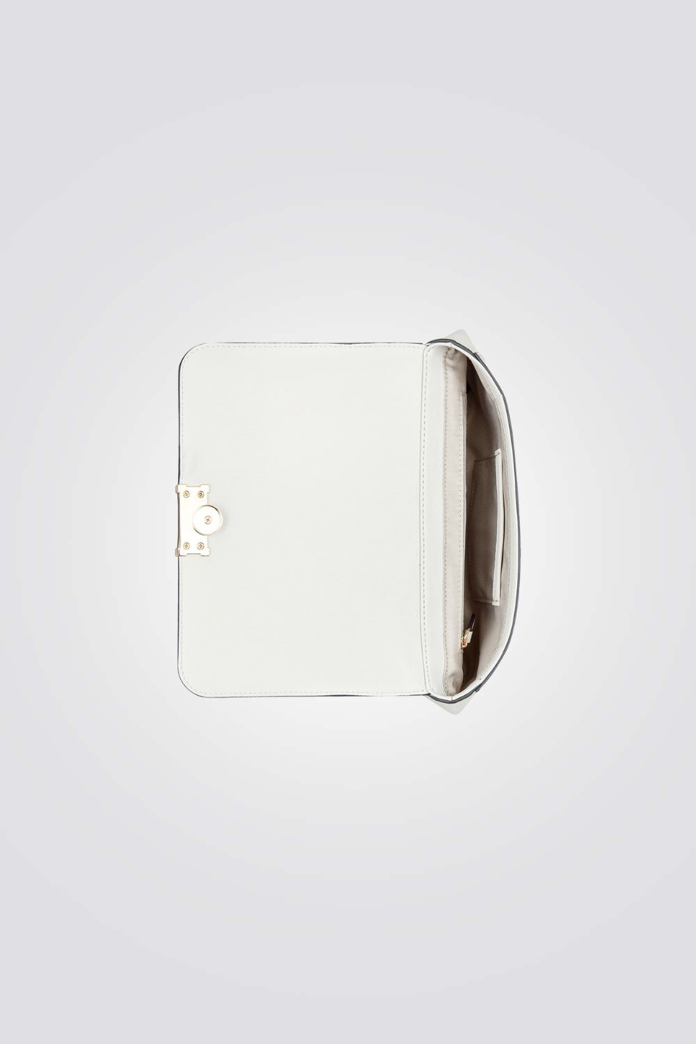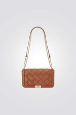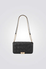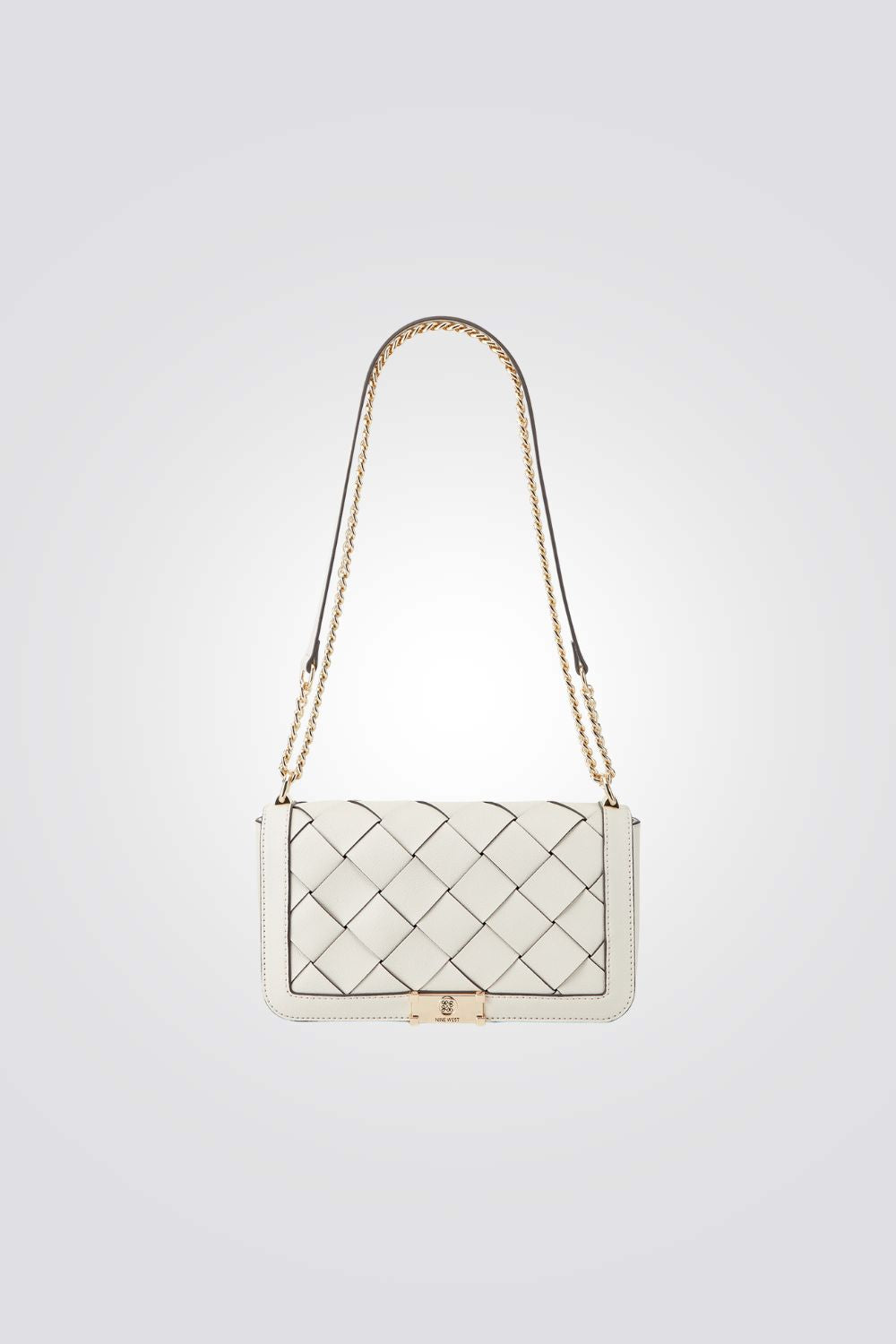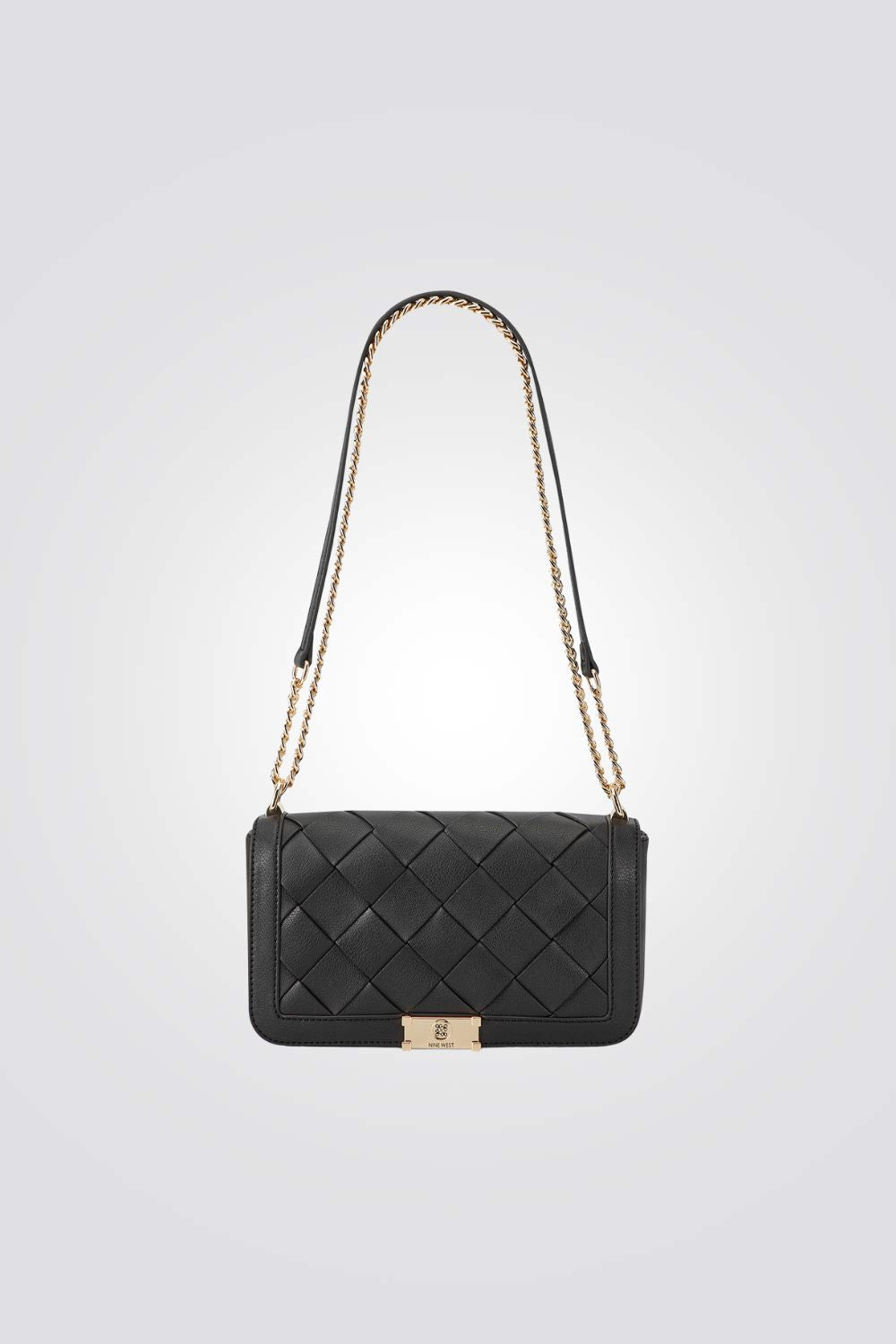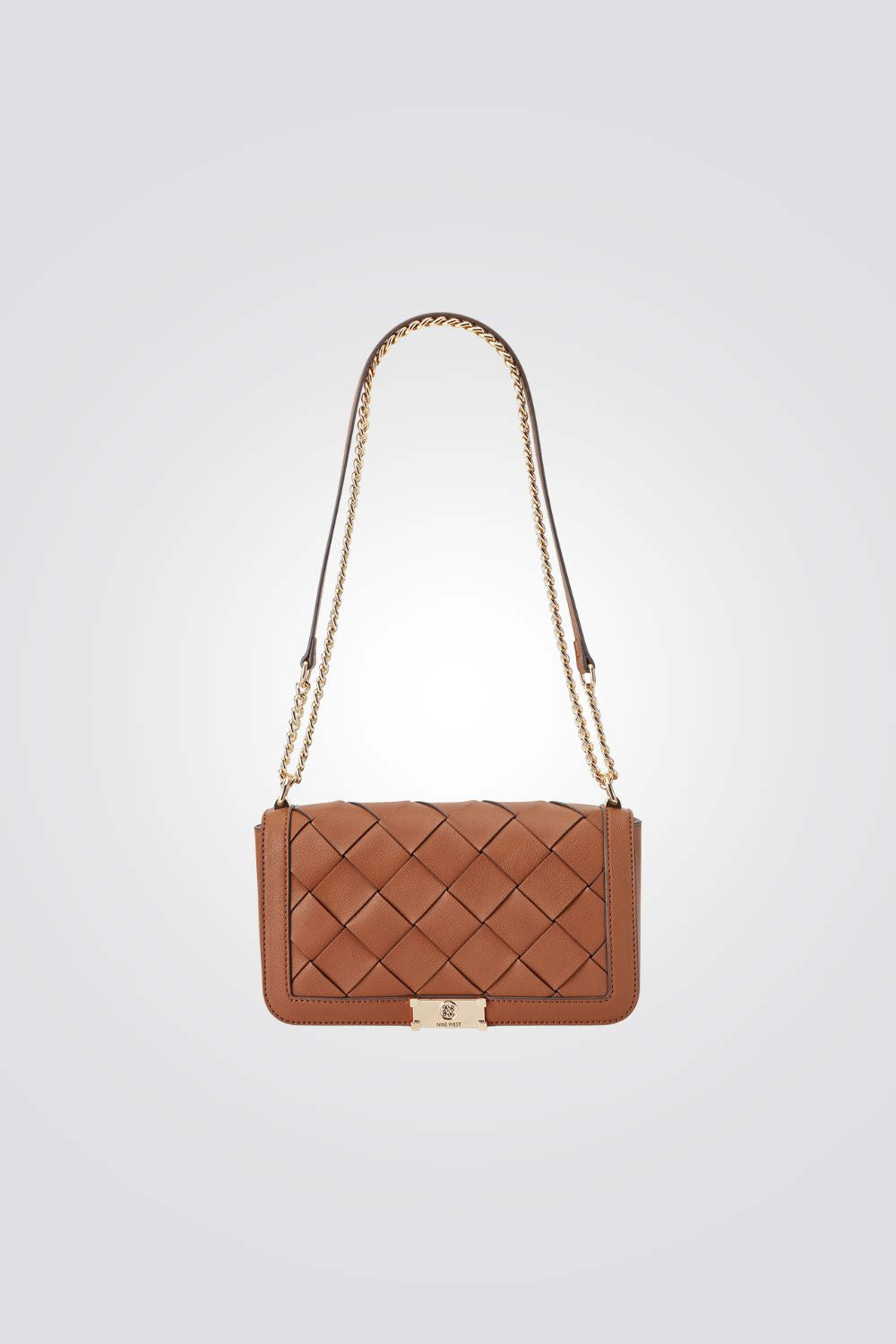 תיק צד לנשים מבית המותג NINE WEST, בעיצוב קלאסי , תא עם סגירה בסגנון מעטפת וכפתור, ורצועת צד ארוכה.