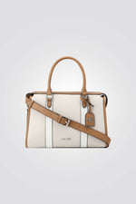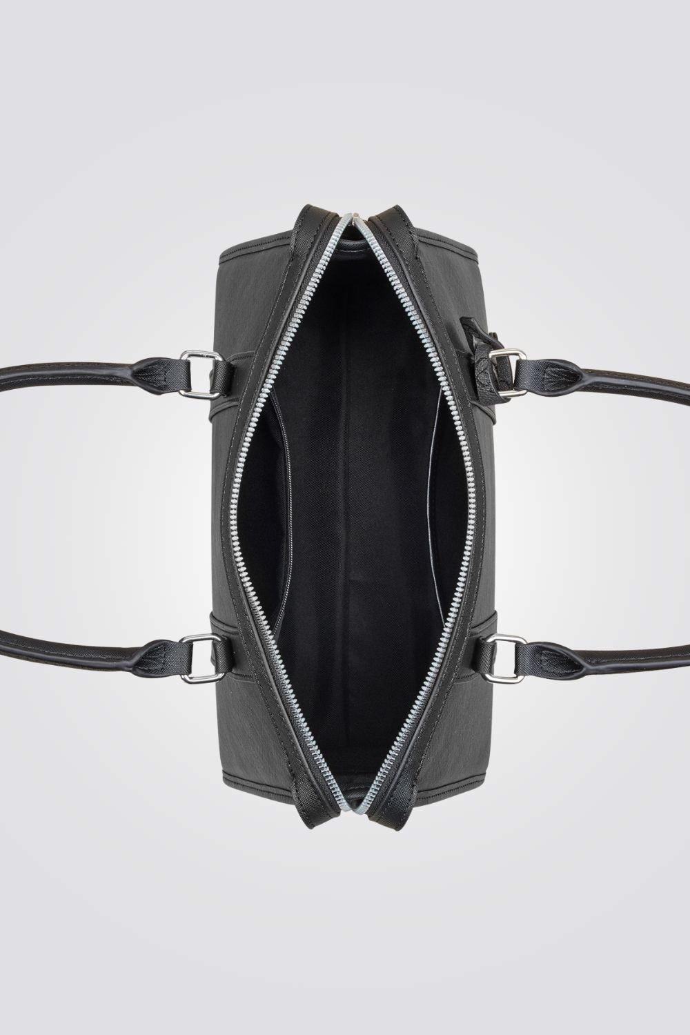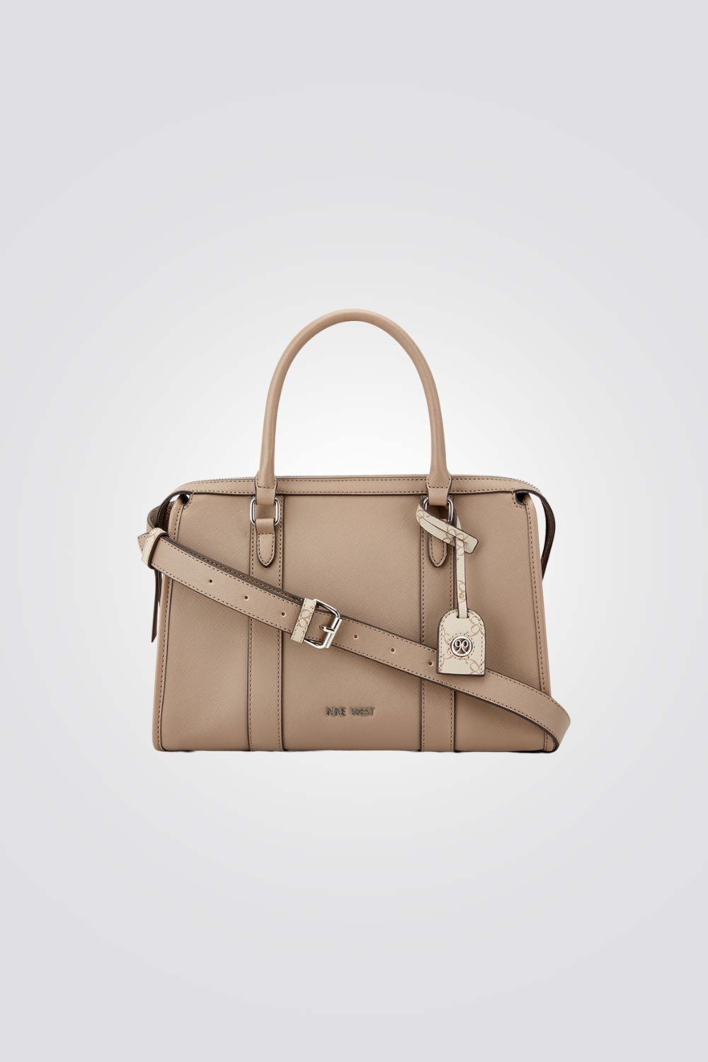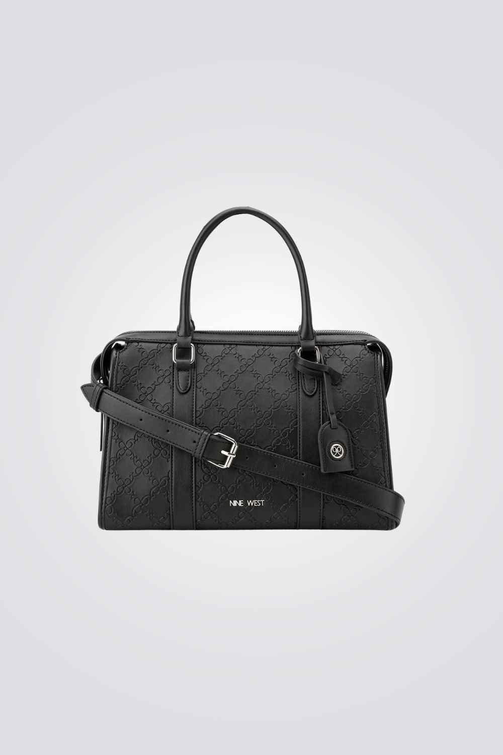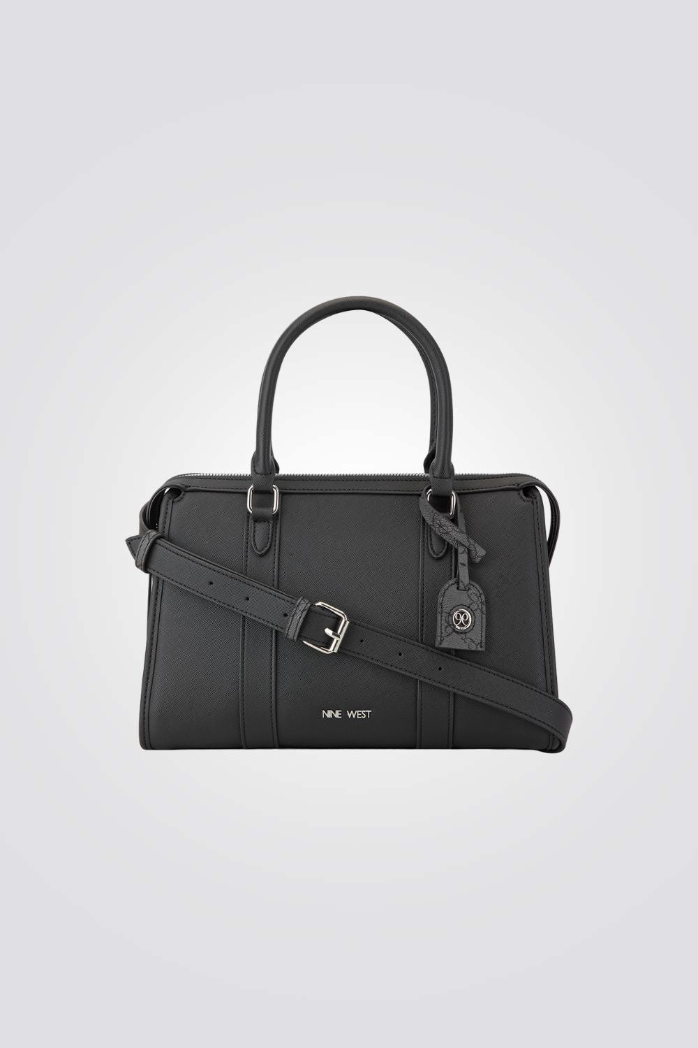 תיק יד לנשים מבית המותג NINE WEST, בעיצוב מודרני עם תא אחד וסגירת רוכסן , 2 ידיות נשיאה ועוד רצועת צד ארוכה.