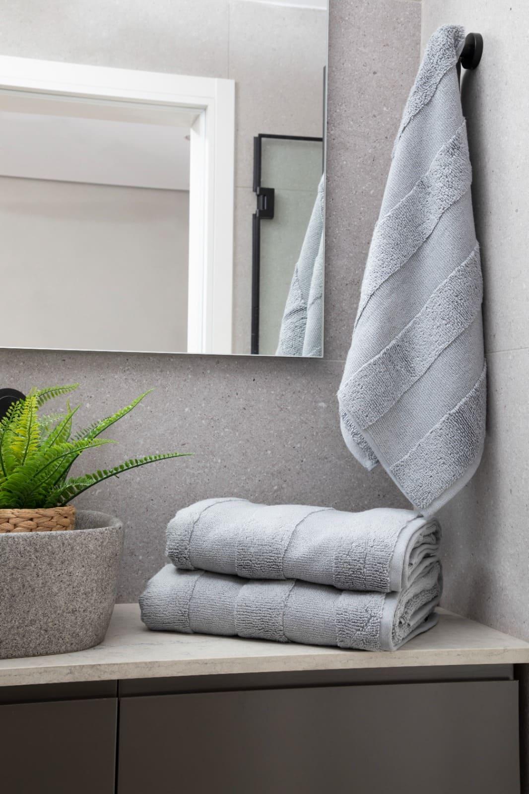 מגבת בצבע אפור בהיר ,עיצוב קלאסי בדוגמת פסים רחבים בצבע אחיד