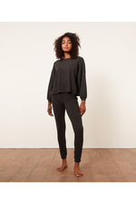 מכנסי סריג של המותג ETAM, עשויים בד רך ומלטף ארוג בדוגמת פסים, גזרה צרה עם מותן אלסטית רכה ושני כיסים, בסיומת מנג'ט בתחתית הרגל. חולצה תואמת נמכרת בנפרד.