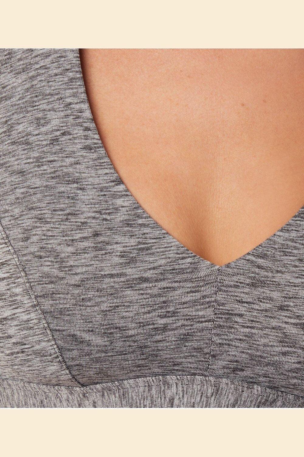 חזיית אימון מבית המותג הצרפתי ETAM עם מחשוף וי עמוק וגב במפתח רייסר, המעניק לך חופש תנועה ונוחות, רצועה אלסטית מתחת לחזה. מספקת תמיכה בינונית לאימונים בעצימות מתונה.