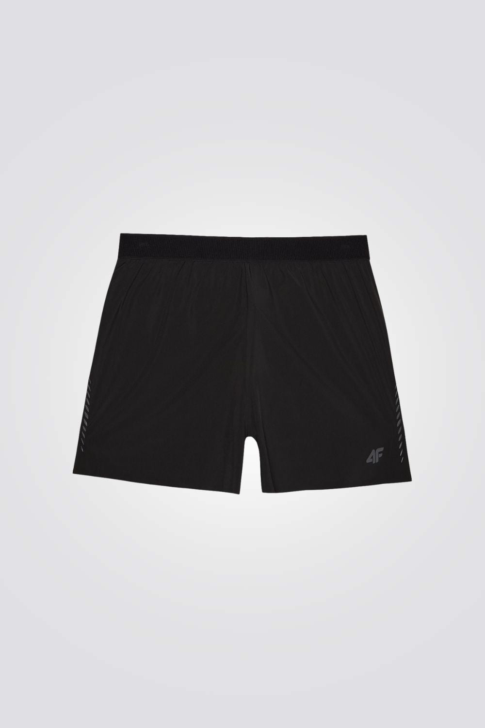 מכנסי אימון קצרים לגברים מבית המותג 4F, בצבע שחור, נוחים וקלילים ומנדפים זיעה, עם מותן אלסטית לנוחות מירבית.