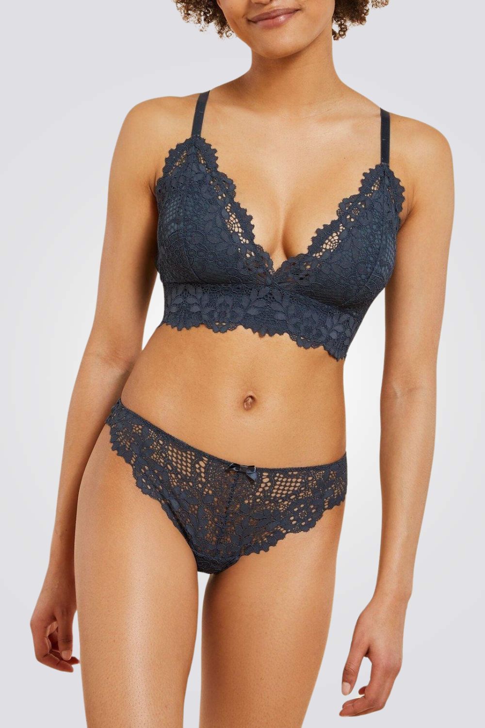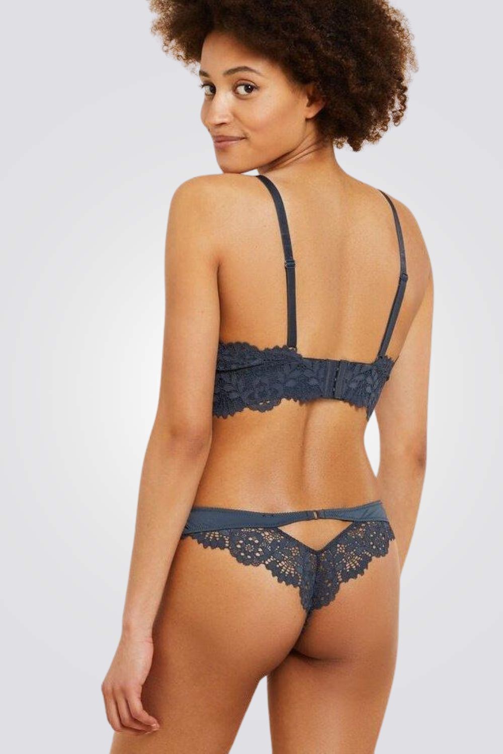 תחתוני תחרה פרחונית עדינים בצבע אפור של המותג ETAM בגזרת טנגה.
