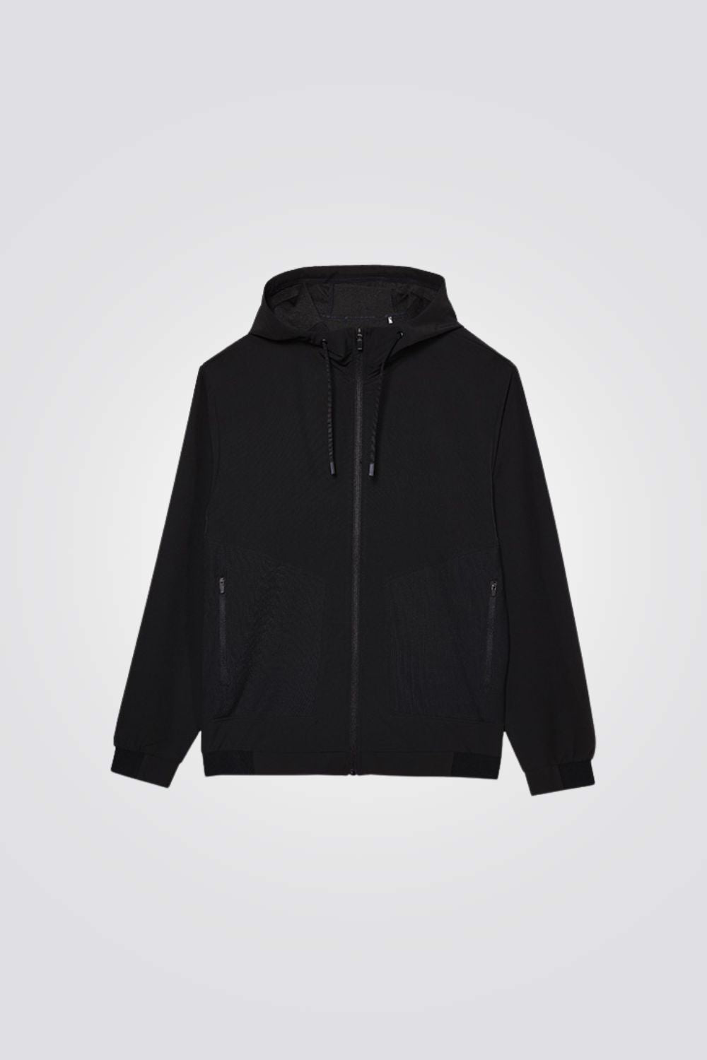 סווטשירט קפוצ'ון לגברים מבית המותג 4F, בצבע שחור, עם סגירת רוכסן ושני כיסים צדדיים.