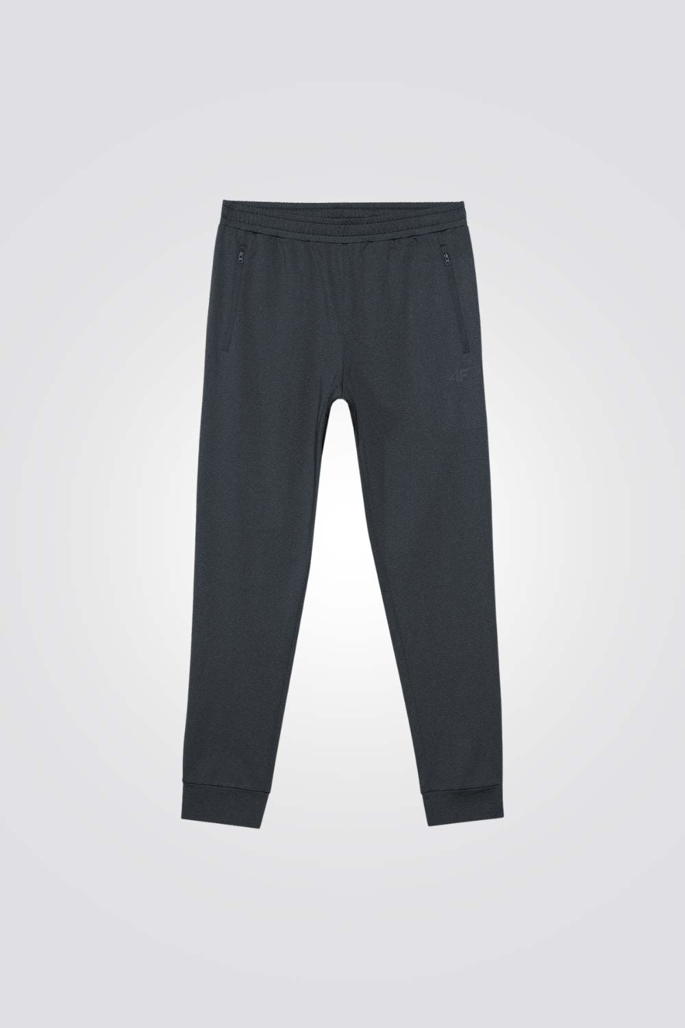 מכנסי אימון ארוכים לגברים מבית המותג 4F, בצבע אפור כהה, נוחים וקלילים ומנדפים זיעה, עם מותן אלסטית לנוחות מירבית.