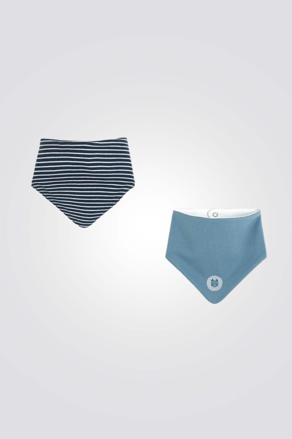 זוג סינרים של המותג OBAIBI עשויים כותנה אורגנית רכה ונעימה במיוחד. בגוון כחול עם דוגמת חתול, וגוון נייבי בדוגמת פסים.