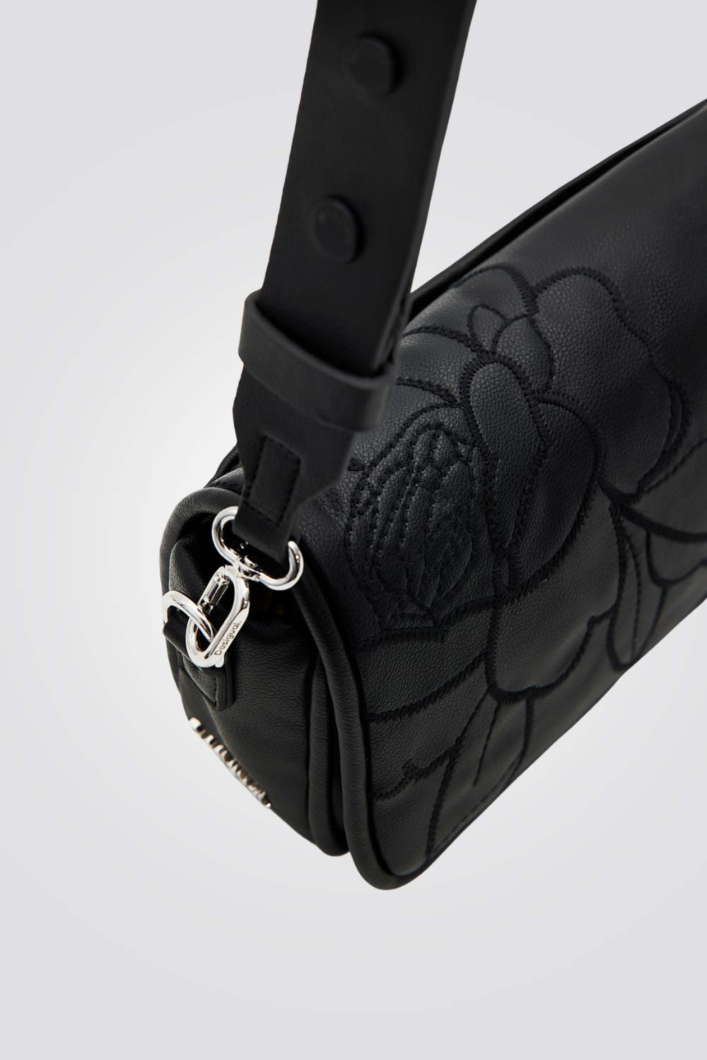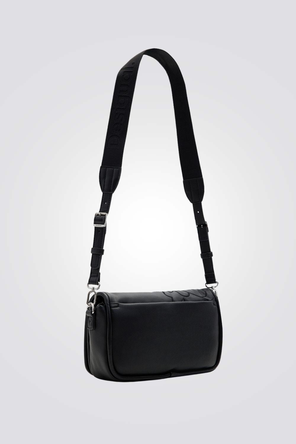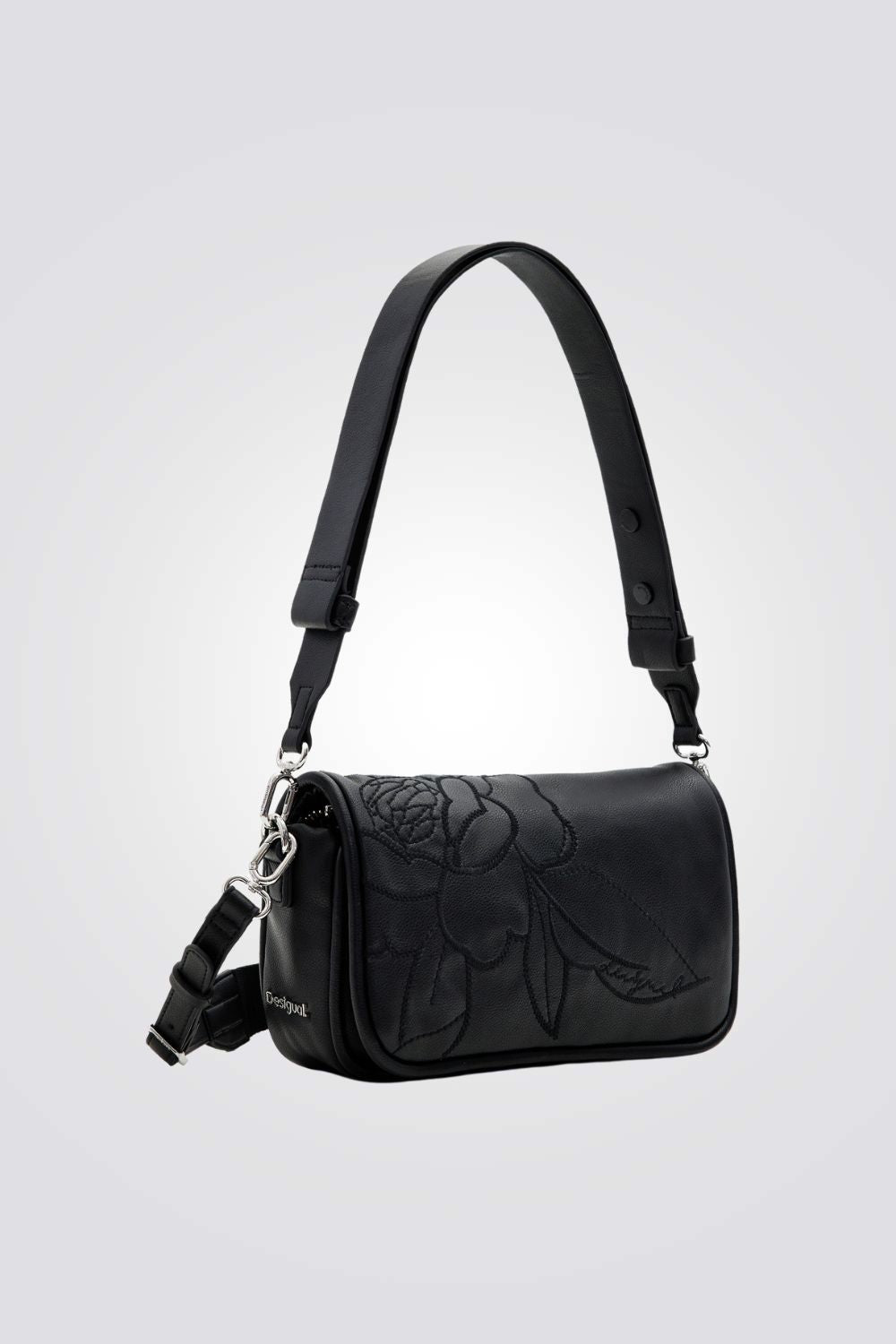 תיק צד לנשים מבית המותג DESIGUAL, בעיצוב קלאסי ומודרני עם רקמת פרח, תא ראשי עם סגירת רוכסן וסגירת מעטפת עם מגנט, ושתי רצועות צד .