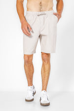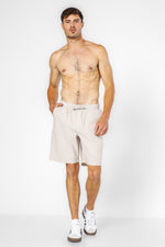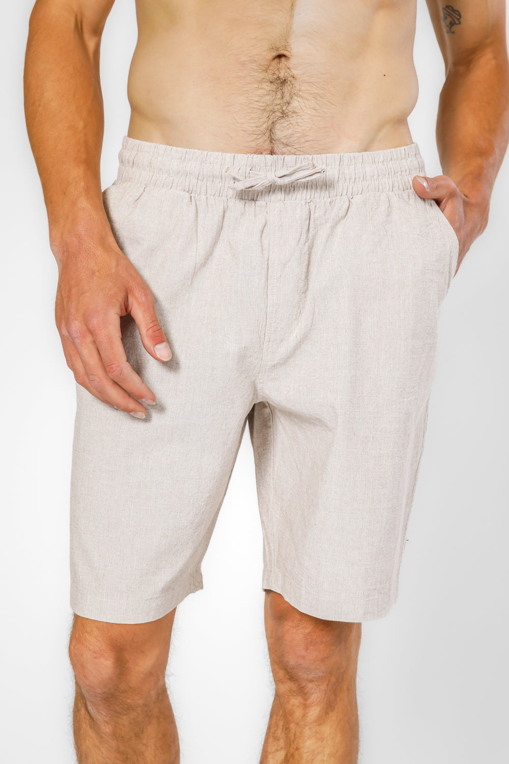 מכנסיים קצרים מבד אריג רך ונעים עם גומי במותניים, שרוכי קשירה, כיס אחורי וכיסים בצדדים לנוחות מירבית.
