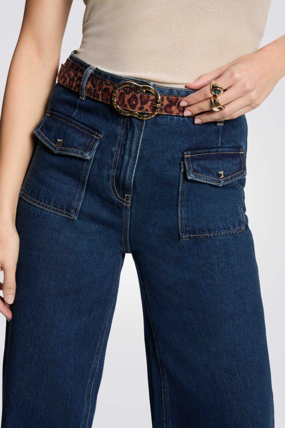 חגורה לנשים מבית המותג MORGAN עם הדפס מנומר ואבזם זהוב, אופנתי ומתאים למגוון סגנונות לבוש.