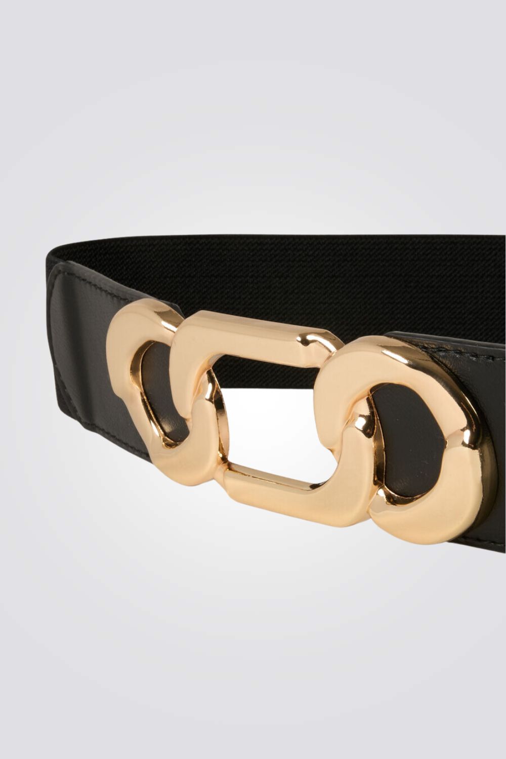 חגורה אלסטית מבית המותג MORGAN, מתכווננת בתוספת אבזם מתכת עם סגירת כפתור בלחיצה.