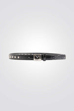 חגורה טקסטורת קרוקודיל בשילוב ניטים