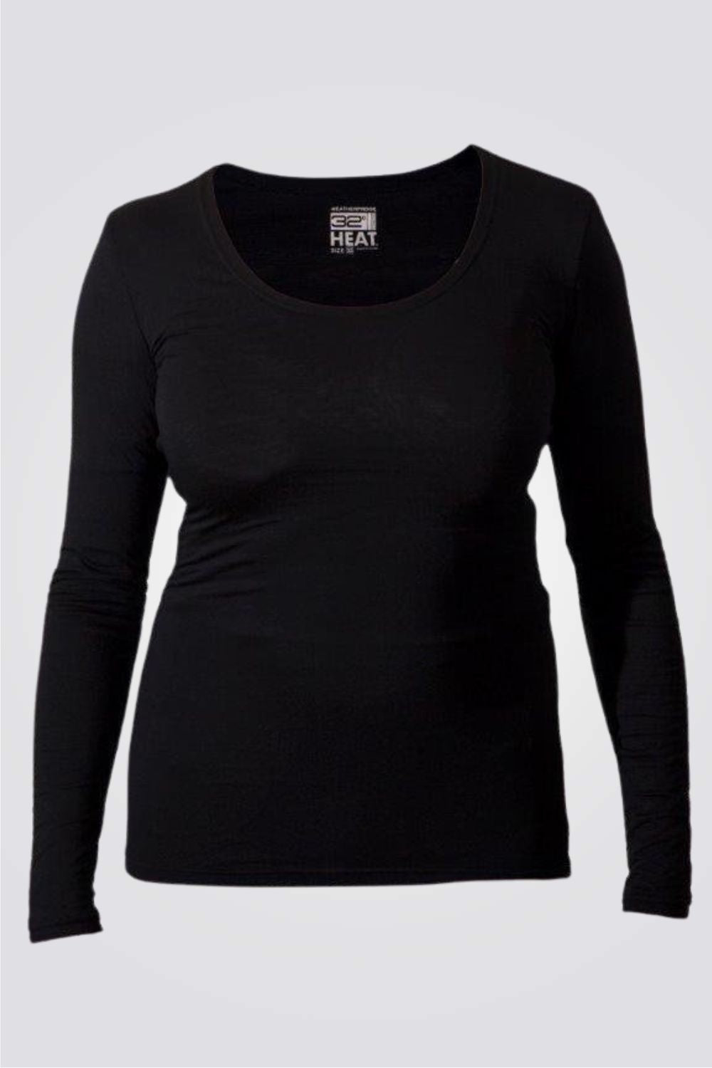 חולצה תרמית בדרגה 1 עם שרוולים ארוכים וצווארון עגול. חולצה לנשים בצבע שחור בגזרה צמודה ונוחה לגוף. לחולצה בד תרמי נעים גמיש ושומר על חום הגוף. החולצה שייכת למותג COOL 32.
