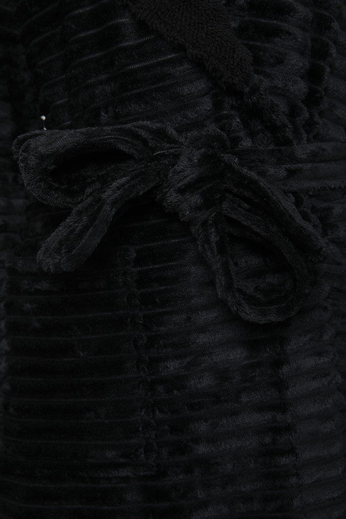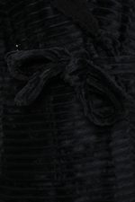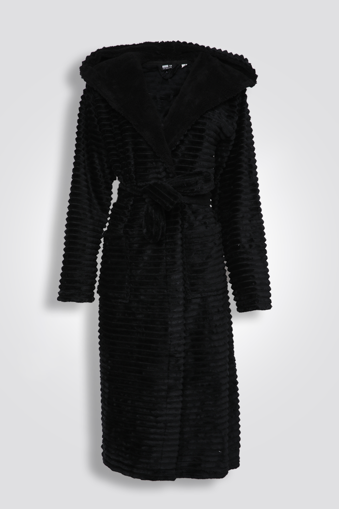 חלוק בית ארוך לימי החורף מבית המותג DELTA העשוי מבד פלאפי פרוותי ורך בטקסטורת פסים עם קפוצ’ון, חגורת קשירה וכיסים בצדדים לנוחות מירבית.