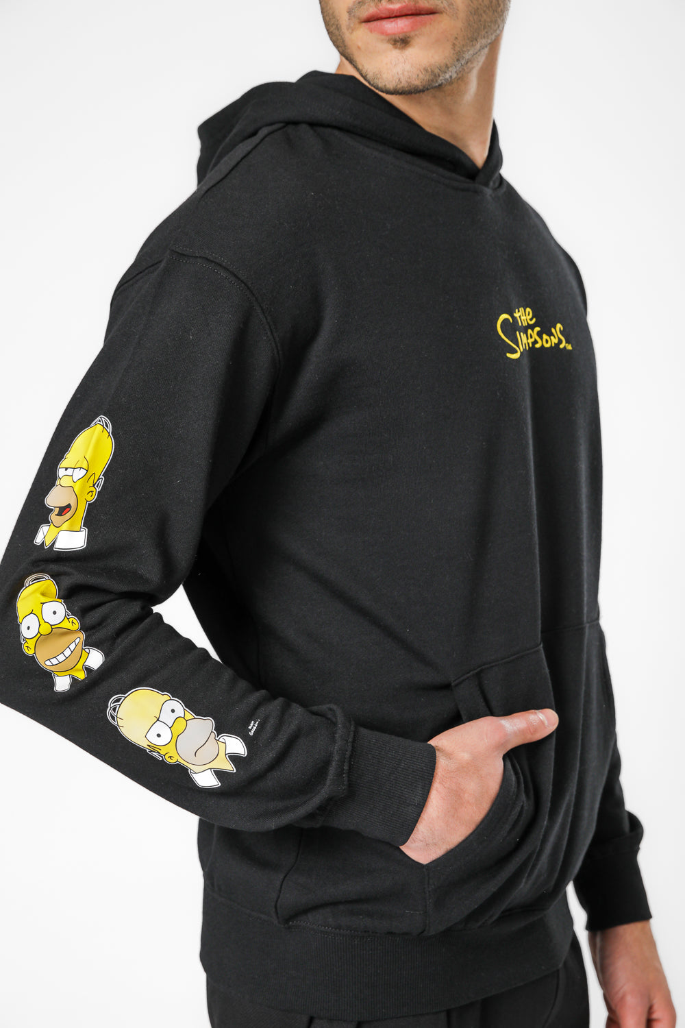 סווטשירט לגברים מבית המותג FOX NET העשוי מבד פוטר רך ומחמם עם קפוצ’ון וכיס קנגורו במוטיב הסימפסונים.