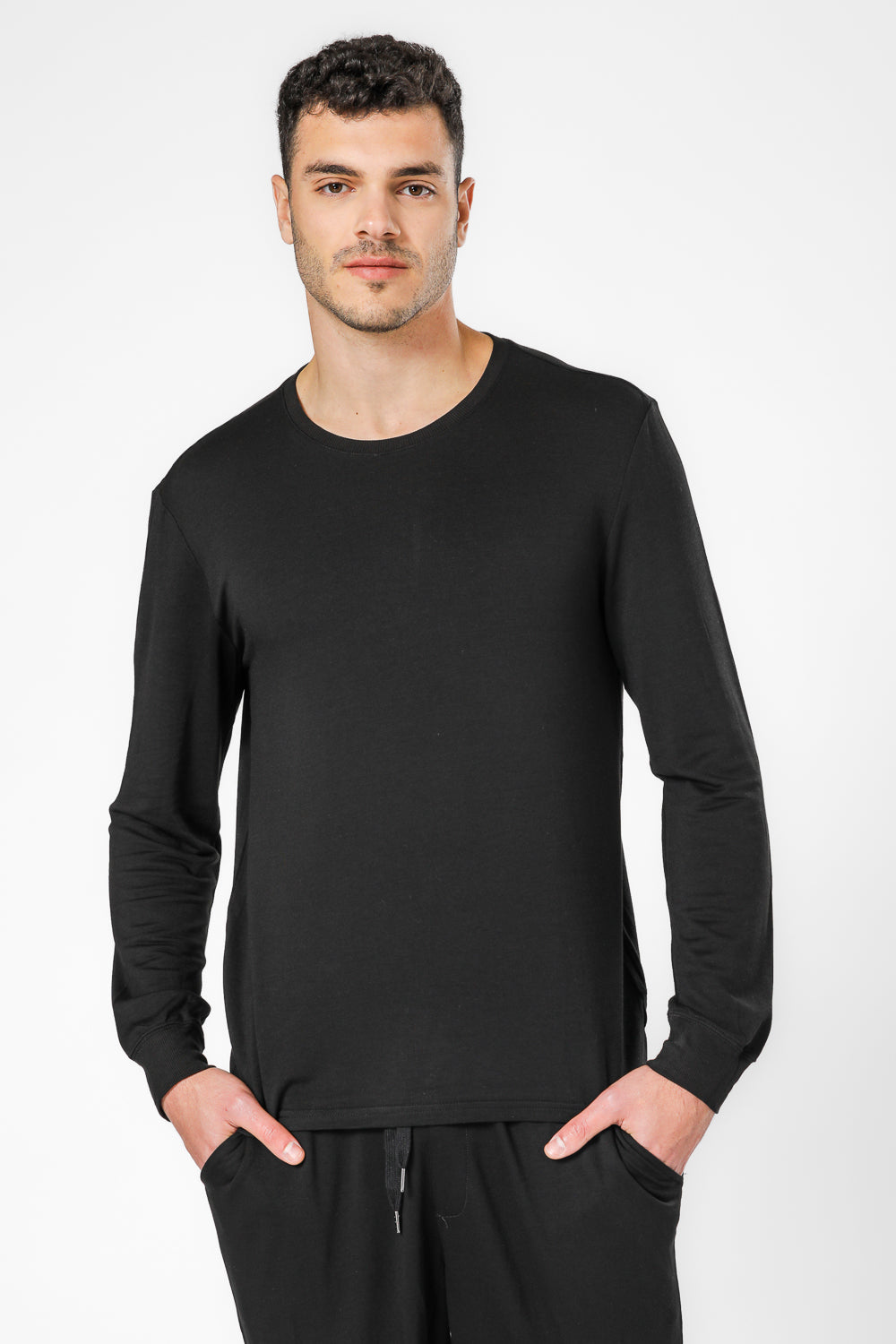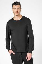 סט פיג'מת מעבר לגברים מבית המותג DELTA העשוי מבד פרנץ’ טרי נעים ורך במיוחד. חולצה עם צווארון עגול, שרוולים ארוכים בסיומת מנג’ט, מכנסיים ארוכים עם גומי, כיסים וסיומת מנג’ט.