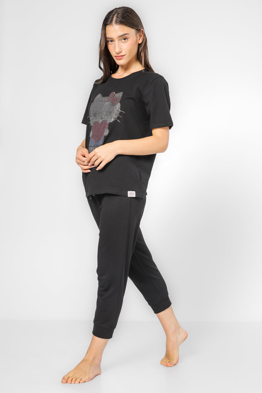 סט פיג’מה באורך 3/4 HELLO KITTY שחורה