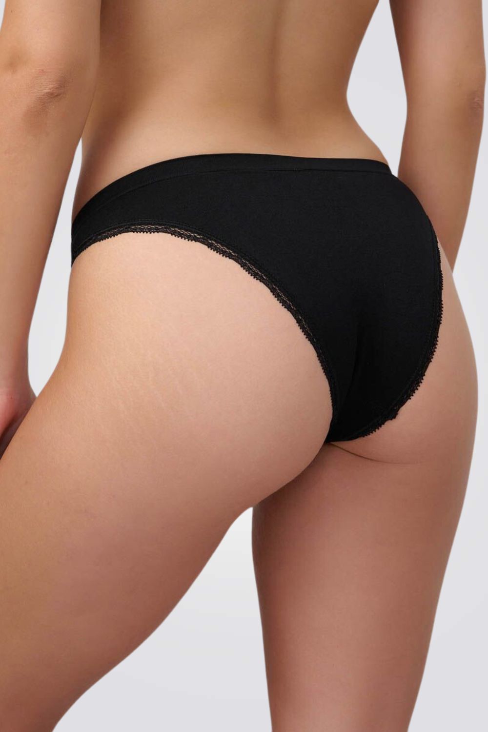 תחתון ברזילאי מבית המותג FEMINA לנשים בצבע שחור, בגזרה מחמיאה המדגישה את קו היריכיים בצורה אלגנטית, עשוי מבד סימלס (ללא תפרים) ייחודי ורך במיוחד, קל ונושם המבטיח תחושה של "לא לובשת כלום" ובעיצוב חלק.